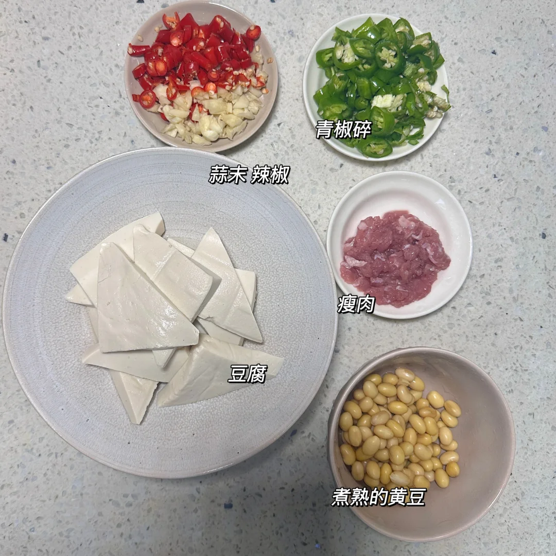 家常烧豆腐 香煎豆腐 没有豆瓣酱 吃起来也别清爽[赞R] ✨食材:豆腐 猪肉 蒜末 小米椒 青椒 熟黄豆 1️⃣:豆腐切对角线 再切片备用。黄豆可以提前一晚泡发 第二天再煮熟,或者用黄豆罐头。热锅热油放盐 把豆腐一块一块放进去,煎到一面金黄再翻面继续煎(锅要烧热 油要粘到锅壁才不会粘) 2️⃣:放蒜末 小米椒在旁边炒几下,加一碗水 调味放一点酱油 蚝油 两勺生抽 转中火煮两分钟 ,放肉 黄豆,用锅铲轻轻推动 让肉散开,把青椒碎放进去 再加点鸡精煮三分钟 好好吃饭呀🤘🏻