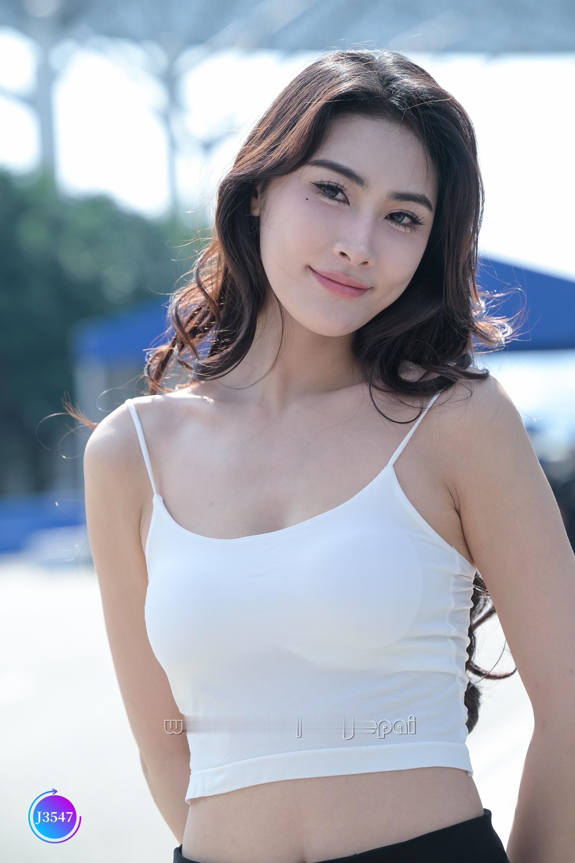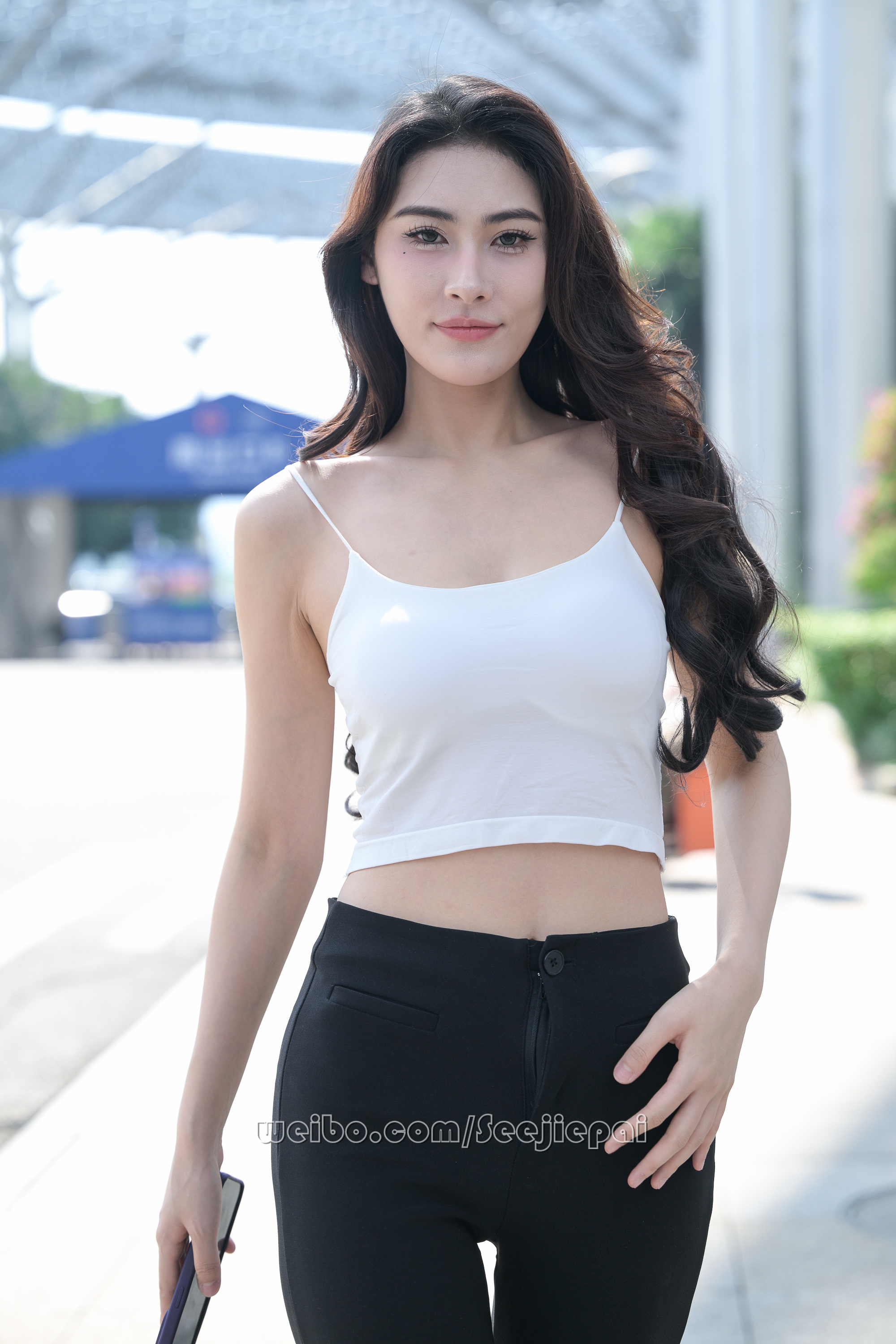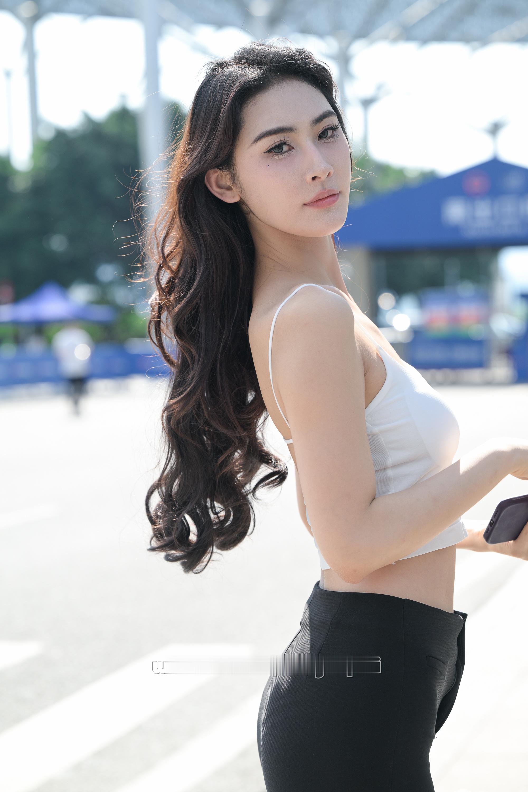 她美得优雅又高级,乌黑秀发高盘成精致发髻,侧颜线条如流水般柔美。白色衬衫勾勒出纤