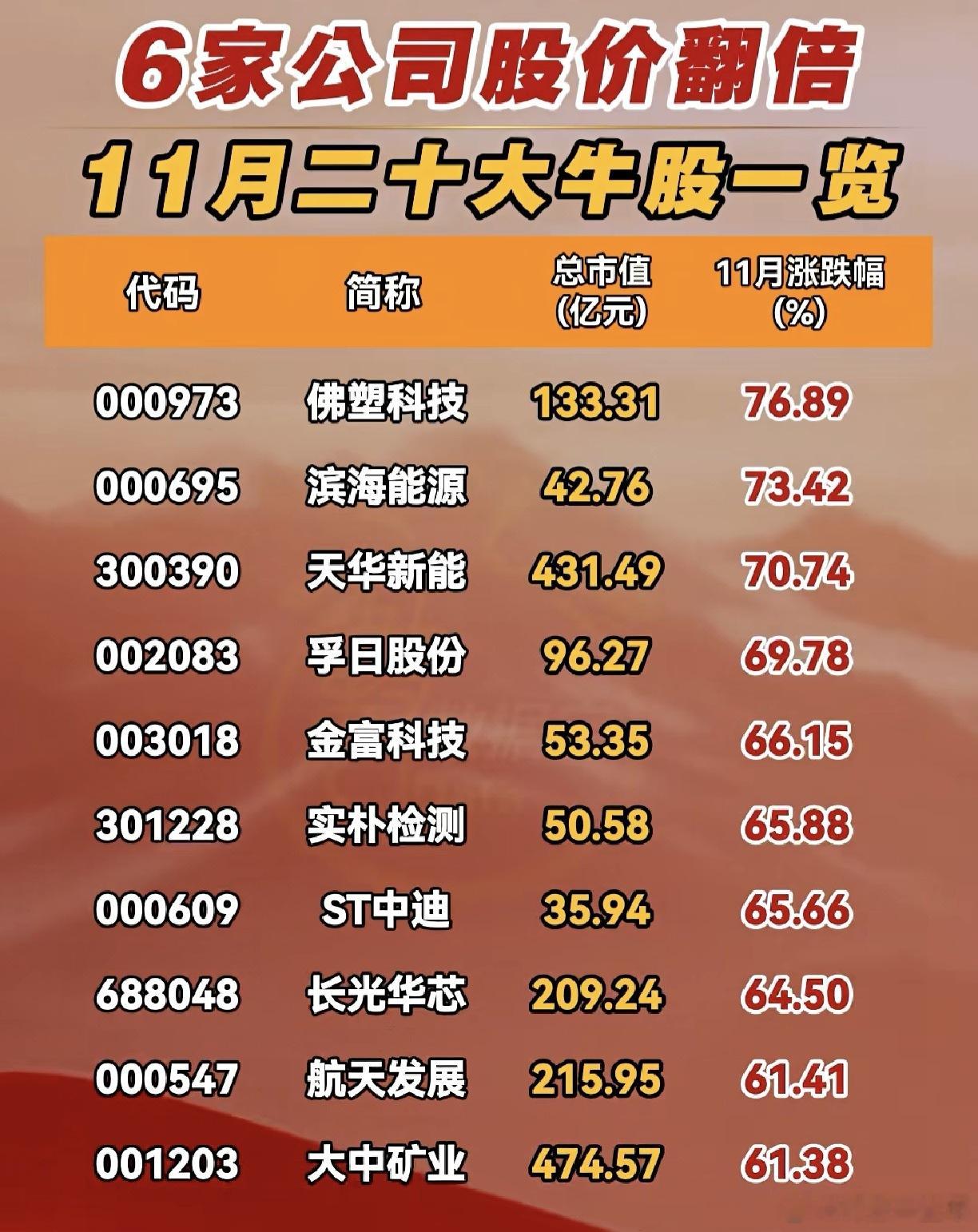 11月涨幅榜A股