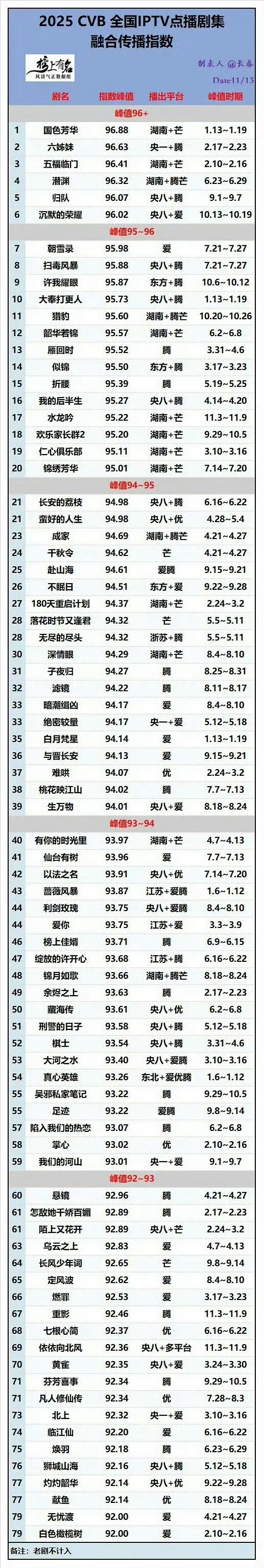 杨紫国色芳华拿下2025CVB古装剧收视率排名第一,2025CVB全国IPVB点