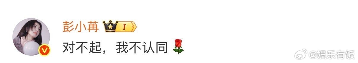 彭小苒 对不起我不认同 一句“对不起,我不认同”,背后是彭小苒清醒的价值观和强大的内心。在很多人仍用“嫁人”衡量女性成功的今天,她勇敢拒绝被定义,坚持用自己的方式书写人生。