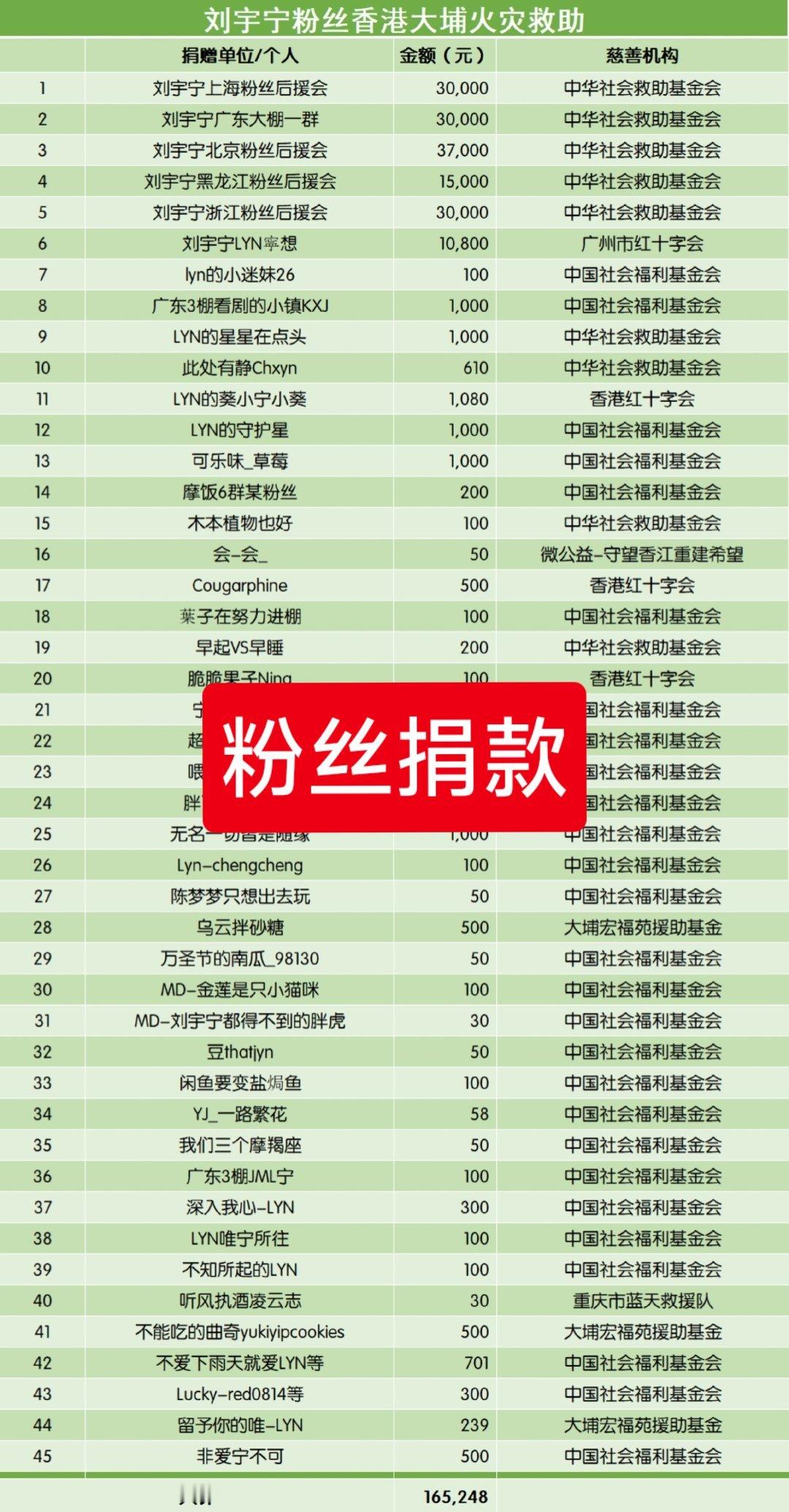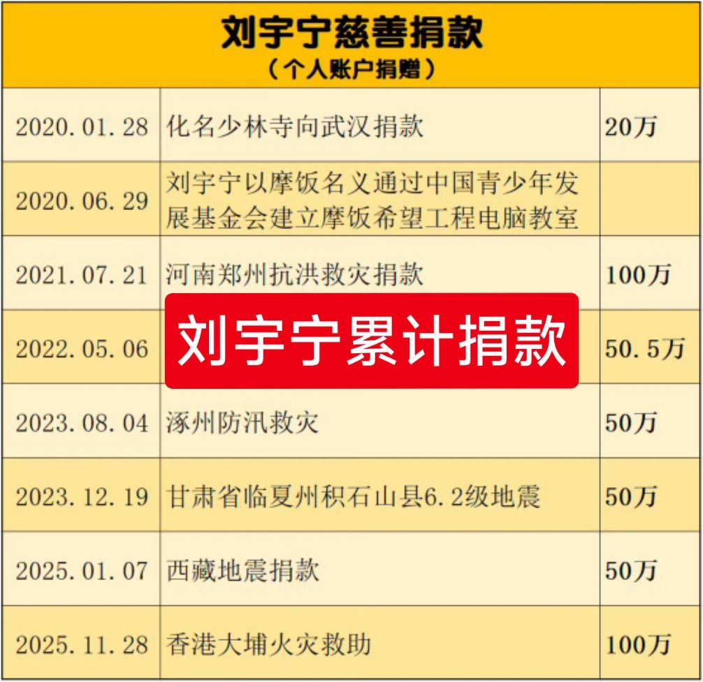 刘宇宁粉丝紧跟宁哥脚步,向香港火灾遇难同胞捐款16.5万元,支持灾后重建。