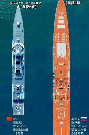 直到看到055和基洛夫并排的对比图,我才惊觉军舰设计已经隔了一个时代。   把055和基洛夫级巡洋舰放一起对比,一眼就能看出军舰设计的代差。   麻烦看官老爷们右上角点击一下“关注”,既方便您进行讨论和分享,又能给您带来不一样的参与感,感谢您的支持!   把055和基洛夫级巡洋舰放一块儿看,真像智能手机跟大哥大同框,压根不是一个时代的东西,基洛夫满载排水量2.8万吨,甲板上密密麻麻堆满了导弹发射架和天线,活脱脱一座海上钢铁堡垒,055只有1.3万吨,整个舰体线条流畅干净,甲板上看不到什么乱七八糟的设备,光这外观就能看出几十年的技术代差。   基洛夫这设计完全是冷战产物,那会儿苏联跟美国拼海上实力,信的就是火力至上,为了对付美国航母,硬是把排水量从最初设计的8000吨加到2.8万吨,光导弹就塞了四百多枚,舰艳那20个倾斜发射筒特别显眼,装的是重型反舰导弹,单枚就6.98吨,还能挂核弹头,专门用来突击航母编队。   防空导弹更是搞了好几层,远程中程近程全配齐,光SA-N-6就备了96枚,这种堆火力的思路在当年挺吃香,谁的拳头硬谁就能赢,但问题是这些发射装置全是专用的,只能装特定型号的导弹,想换新装备都装不进去,就跟老式电视机似的,笨重还没法升级。   最要命的是基洛夫的电子系统太落后,舰上那些雷达都是上世纪的老古董,抗干扰能力差得很,2022年测试的时候连F-35都探测不到,这在现代海战里就是睁眼瞎,而且不同雷达各干各的活,数据还不互通,想整合起来都费劲,俄罗斯改装纳希莫夫号的时候,光是整合雷达系统就花了五年时间。   2016年俄罗斯派彼得大帝号去叙利亚,按说这么猛的火力该大显身手,结果全程就干了点防空警戒的活儿,一枚导弹都没发射,为啥?因为电子系统跟不上,面对复杂的战场环境,主力雷达都不敢随便开,怕被敌方定位锁定,这就是光有火力没有配套系统的尴尬。   055走的完全是另一条路子,表面上只有112个垂直发射单元,数量比基洛夫少多了,但这些全是通用垂发系统,跟万能插座似的,防空导弹、反舰导弹、巡航导弹、反潜导弹都能装,而且还能一坑多弹,一个发射单元里塞好几枚中近程导弹,实际装载量比看着多不少。   更关键的是这套系统能随时升级,想换新型导弹换个模块就行,去年遵义舰带队远航两万公里,40天没靠港,期间完成了各种演练,要换成基洛夫,光不同导弹的补给就够它喝一壶的,这种灵活性在现代海战里太重要了,打的就是快速反应和多样化任务。   真正拉开差距的是雷达和信息系统,055装的双波段雷达是全球独一份的技术,S波段雷达负责大范围搜索,X波段雷达专盯隐身目标,两套系统数据共享,一秒钟就能处理2000公里内的空情信息,这速度比美国最先进的伯克III级还快六成,同时跟踪几百个目标完全不在话下。   更牛的是055能当整个编队的指挥中枢,把所有舰艇的雷达信息整合到一块儿,统一分配目标协调火力,编队里其他军舰甚至可以闭着眼睛开火,055告诉它打哪就打哪,这种协同作战能力能让整个编队的战斗力提升一半以上,相当于一个移动的海上作战指挥部。   基洛夫那核动力听着挺高级,实际上就是个麻烦,2018年改造的时候反应堆还漏过冷却剂,三十多个技术人员都受了辐射,现在连新核燃料都造不出来,只能用八十年代的库存,故障率比设计值高了三倍,彼得大帝号2017年开始大修,到现在都没完全恢复战斗力。   055用的是四台燃气轮机,总功率15万马力,跑起来跟基洛夫一样快,但启动快维护简单,而且预留了充足的电能,以后装电磁炮激光武器都没问题,这才叫给未来留空间,遵义舰那次远航就证明了,燃气轮机的续航能力完全够用,关键是随时能出动,不像核动力动不动就得回船厂大修。   隐身设计的差距更是肉眼可见,基洛夫浑身都是凸起的设备,雷达反射面积大得吓人,几十公里外就能被发现,055的舰体全是倾斜面,连舷窗都做了特殊处理,雷达反射截面比一艘500吨的导弹艇还小,这意味着055能偷偷摸到敌人跟前再开火,而基洛夫还在那儿当活靶子。   这两艘船的差距,根子上是作战思想的不同,基洛夫代表的是冷战时期比火力拼数量的老路子,靠吨位和导弹数量硬扛,055代表的是信息化时代的新打法,靠体系作战和精准打击制胜,当055用双波段雷达锁定目标、通过数据链协同编队作战的时候,基洛夫那套单打独斗的玩法早就过时了。