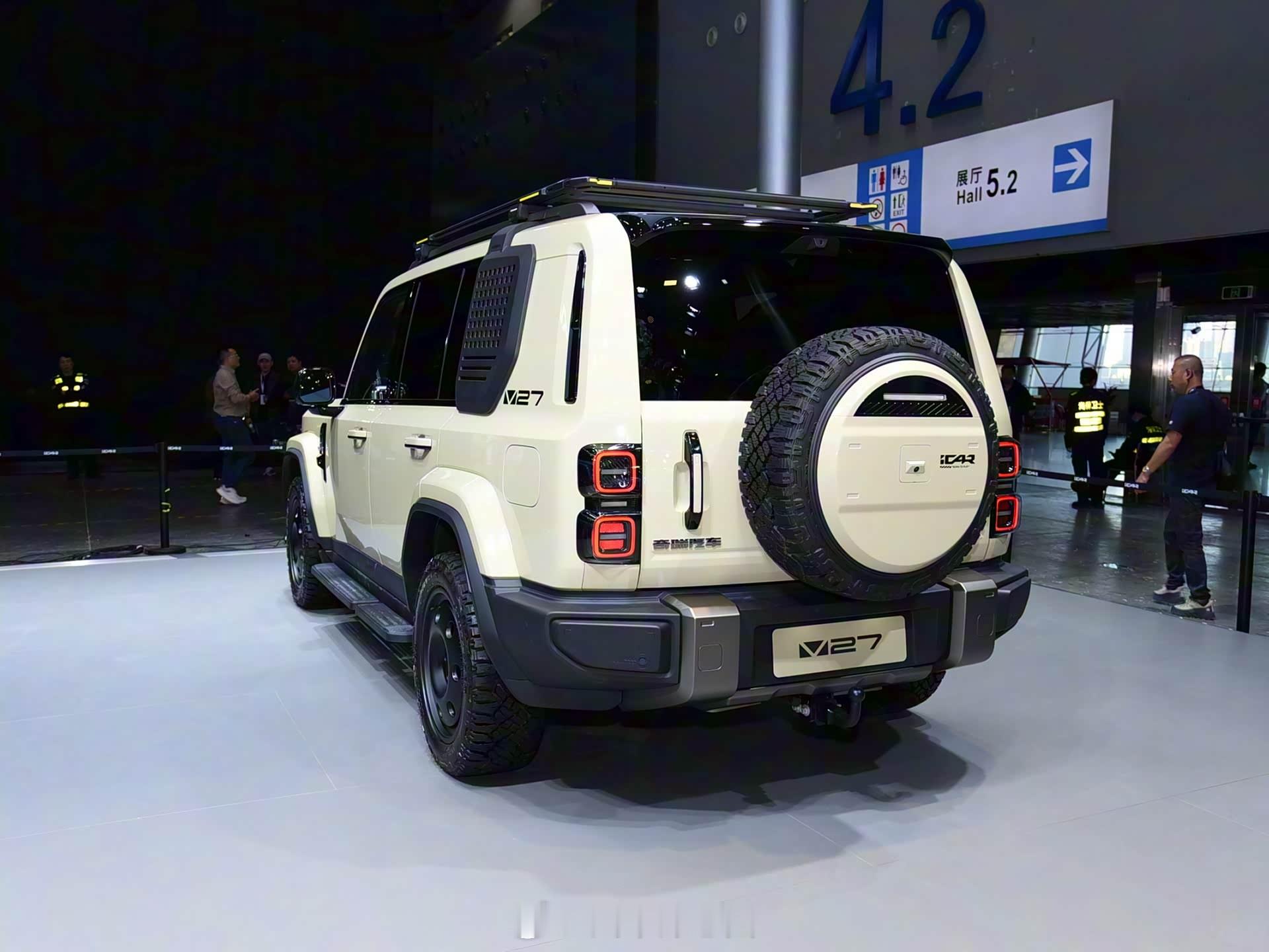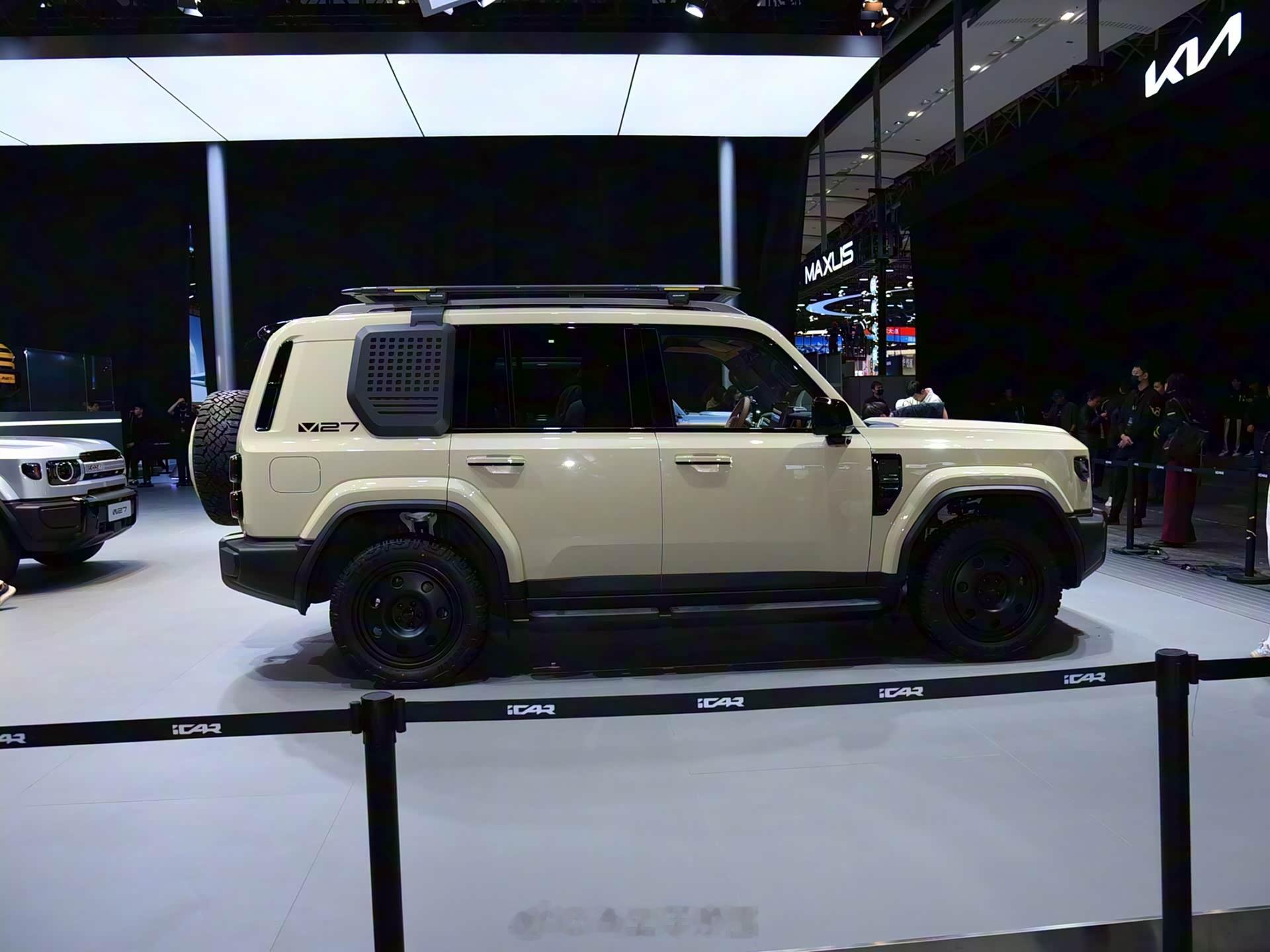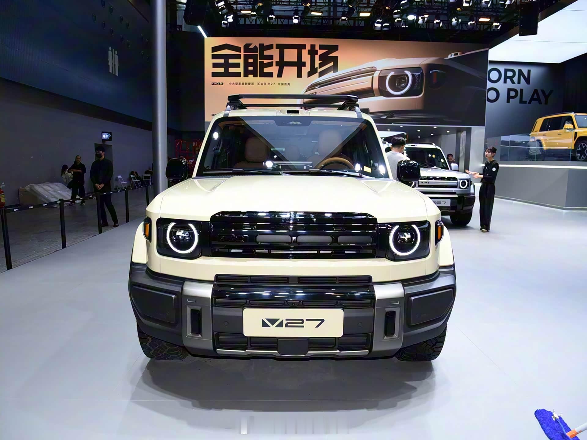 奇瑞iCAR V27实车,车长超4.9米,配增程动力增程 中大型SUV 车长4909(小书包版)/5055(备胎版)轴距2910搭载1.5T增程动力提供后驱/四驱版四驱版零百加速5秒级34.3kWh磷酸铁锂电池纯电续航200km+综合续航1200km+高配车型有顶置激光雷达猎鹰700+地平线HSD驾驶辅助8295P芯片+15.4英寸中控屏23扬声器7.1.4声道音响V27家庭新硬派广州车展首秀V27全能硬派全家都爱2025广州国际车展