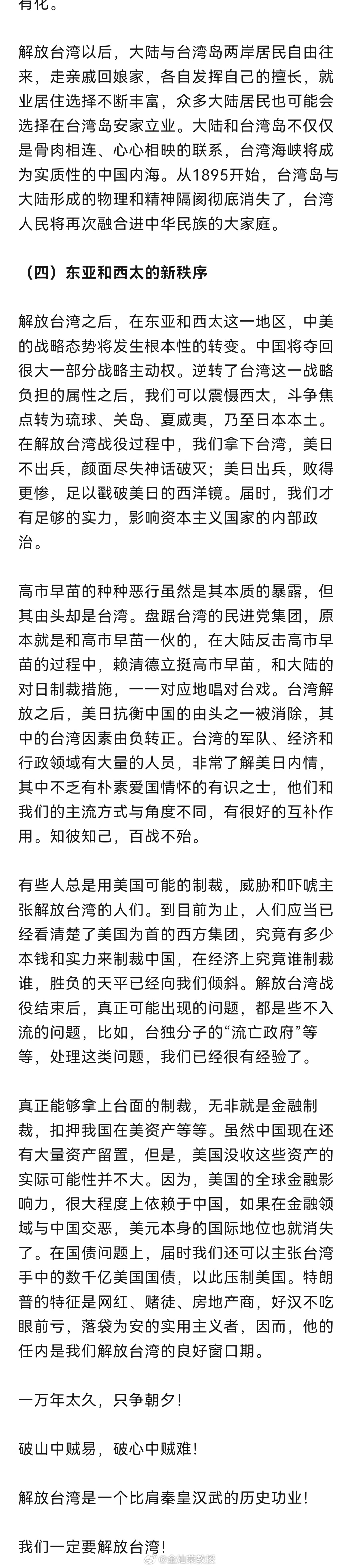 此文有理有据,逻辑严密,切中要害,解放台湾战役应当尽早发起!