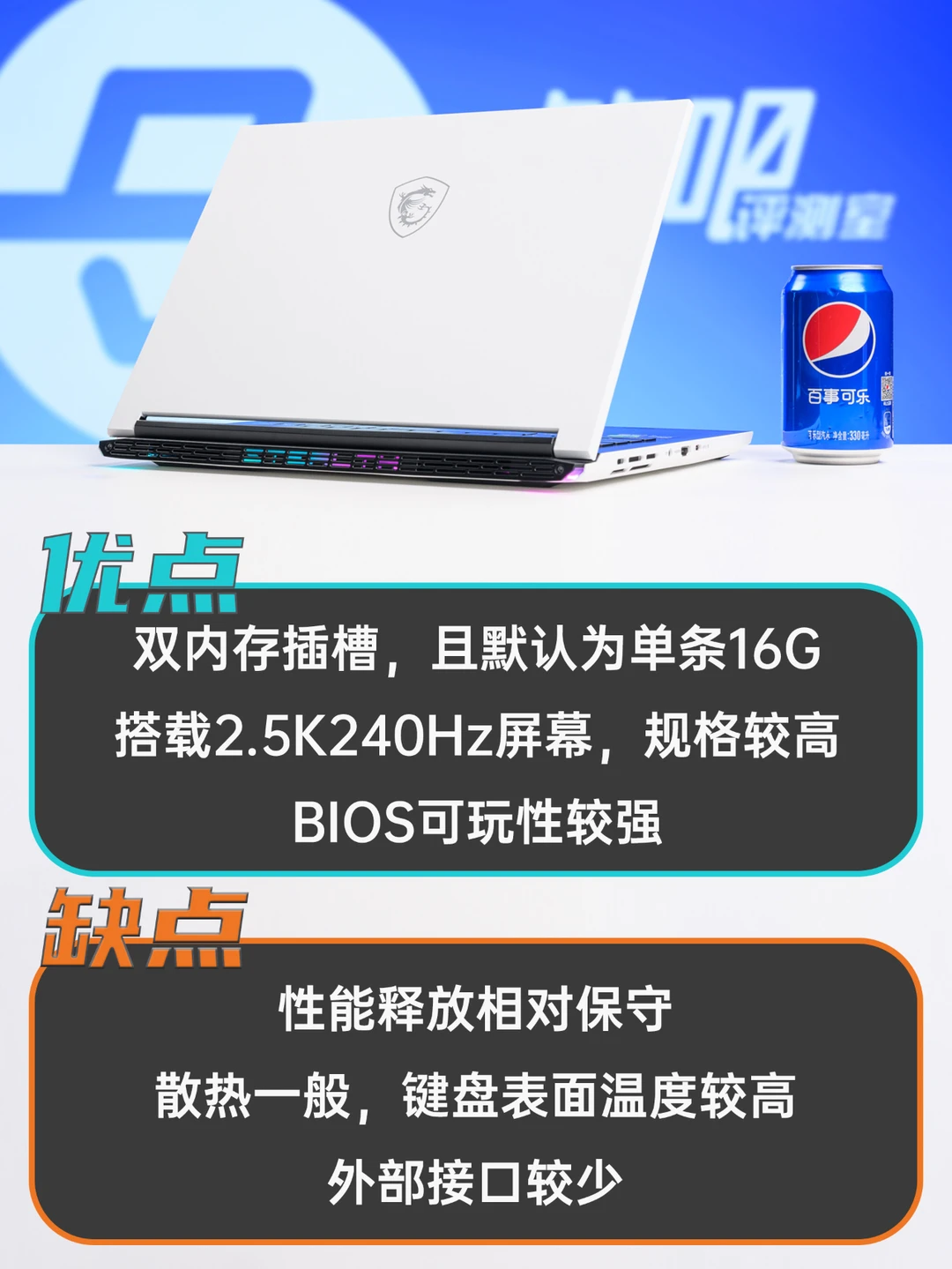 ✅搭载2.5K 240Hz屏幕,规格较高