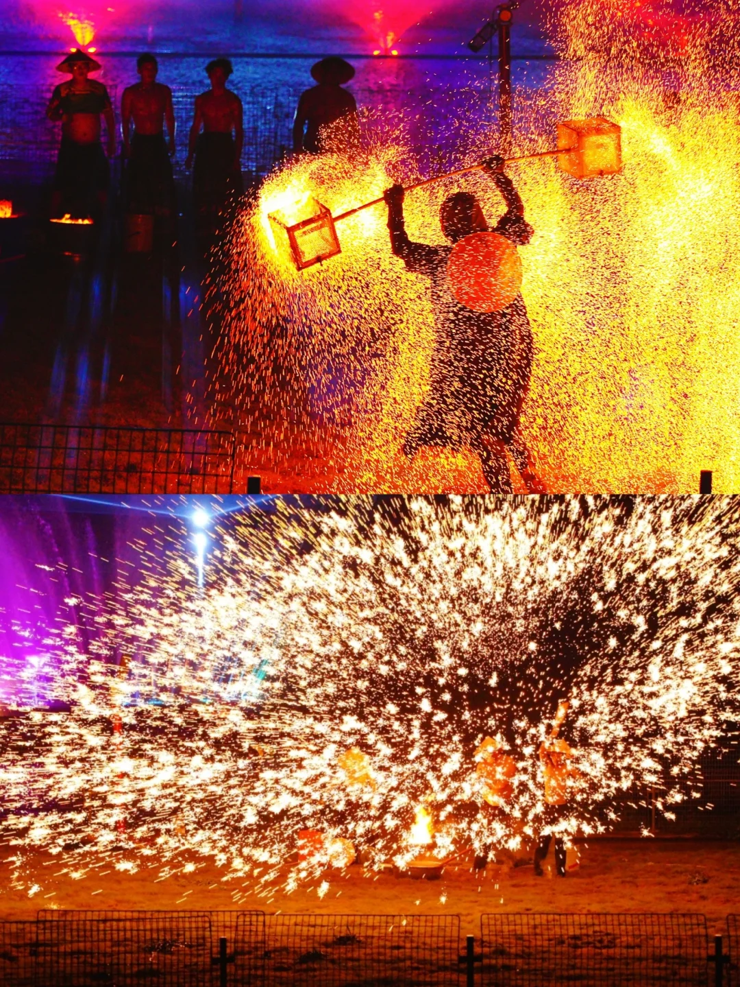 国庆期间园区还有民俗和非遗表演,比如打铁花、喷火等!以及大型烟花秀和各种趣味演出!主打一个欢乐氛围拉满!