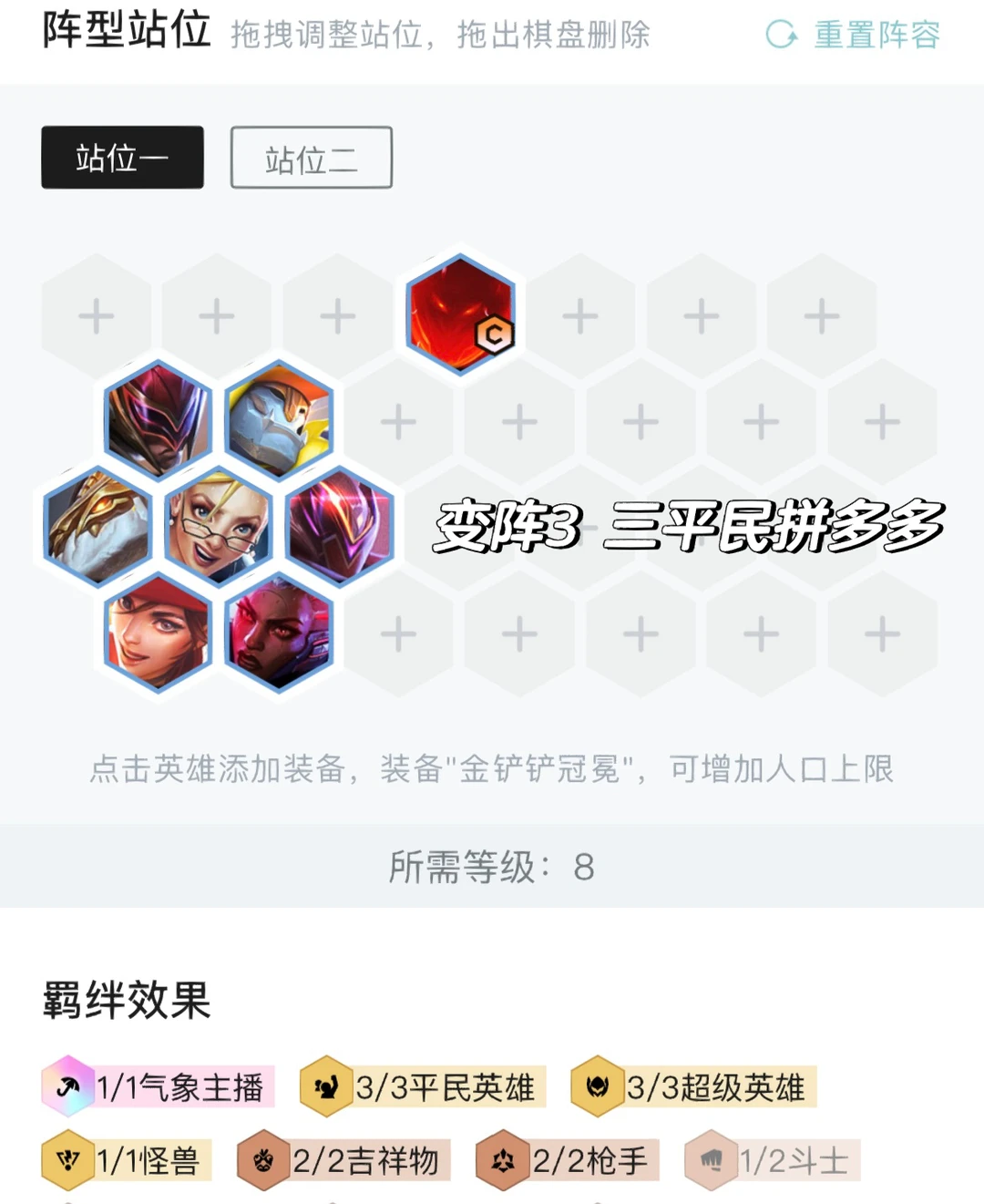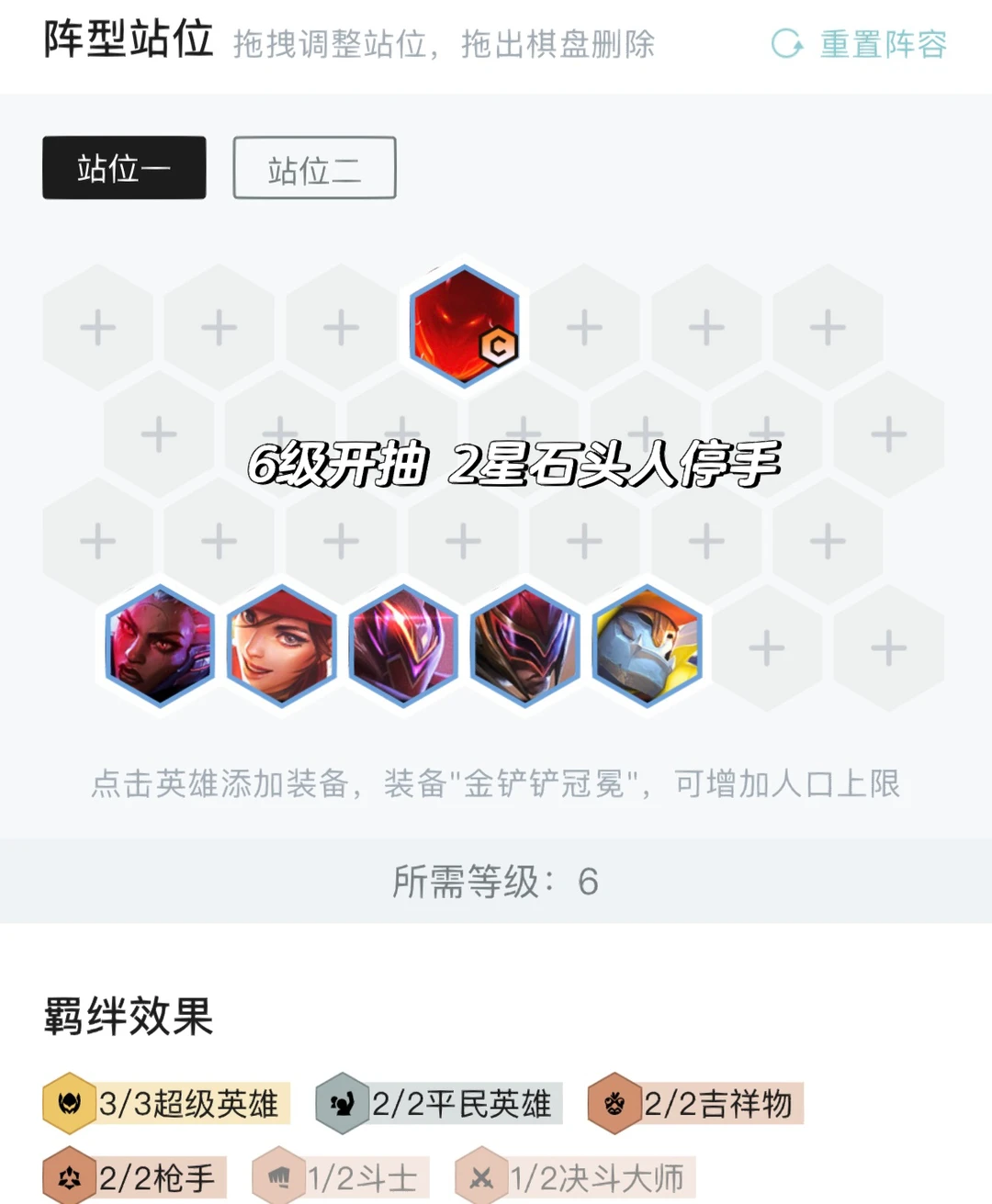 最迟4-5左右追出三星石头人,锁血上人口。如果有2家以上同行可以二星直接拉8转型阵容,不要花冤枉钱三星不了后期不行。