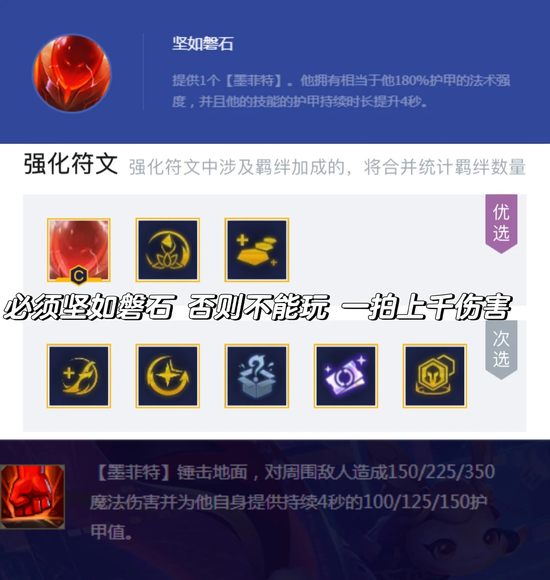 这个海克斯主要是靠延长技能时间无限叠护甲和法强,石头人单顶都根本死不了,护甲越高法强越高,到后面一个技能就是2000+伤害,拍谁谁死。