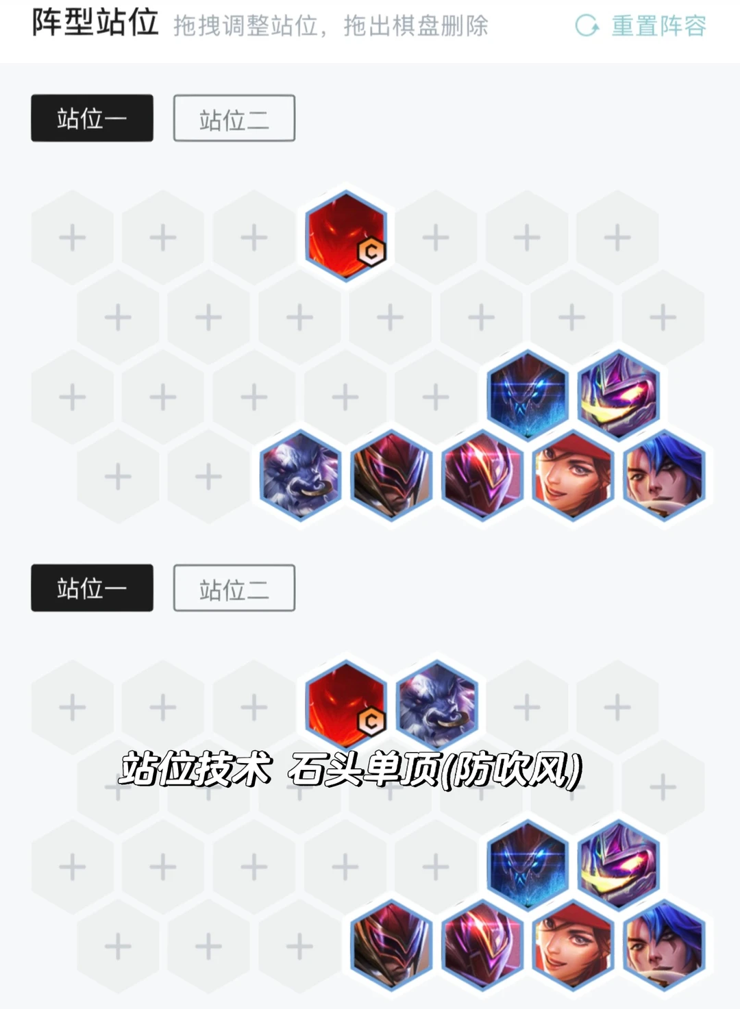 石头人单顶,这样才能最大化打出技能效果。但是要注意防守吹风,这个需要自己多注意。