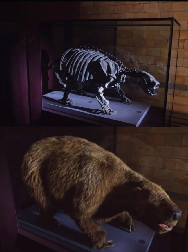 巨型地懒们生活在南美草原,身躯重达两吨,不擅长奔跑,是温和的食草性动物。有时,他们会用后腿站立起来,高达3米,用爪子撕下树叶,除此之外,他们还用爪子刨洞,当做自己隐匿的家。