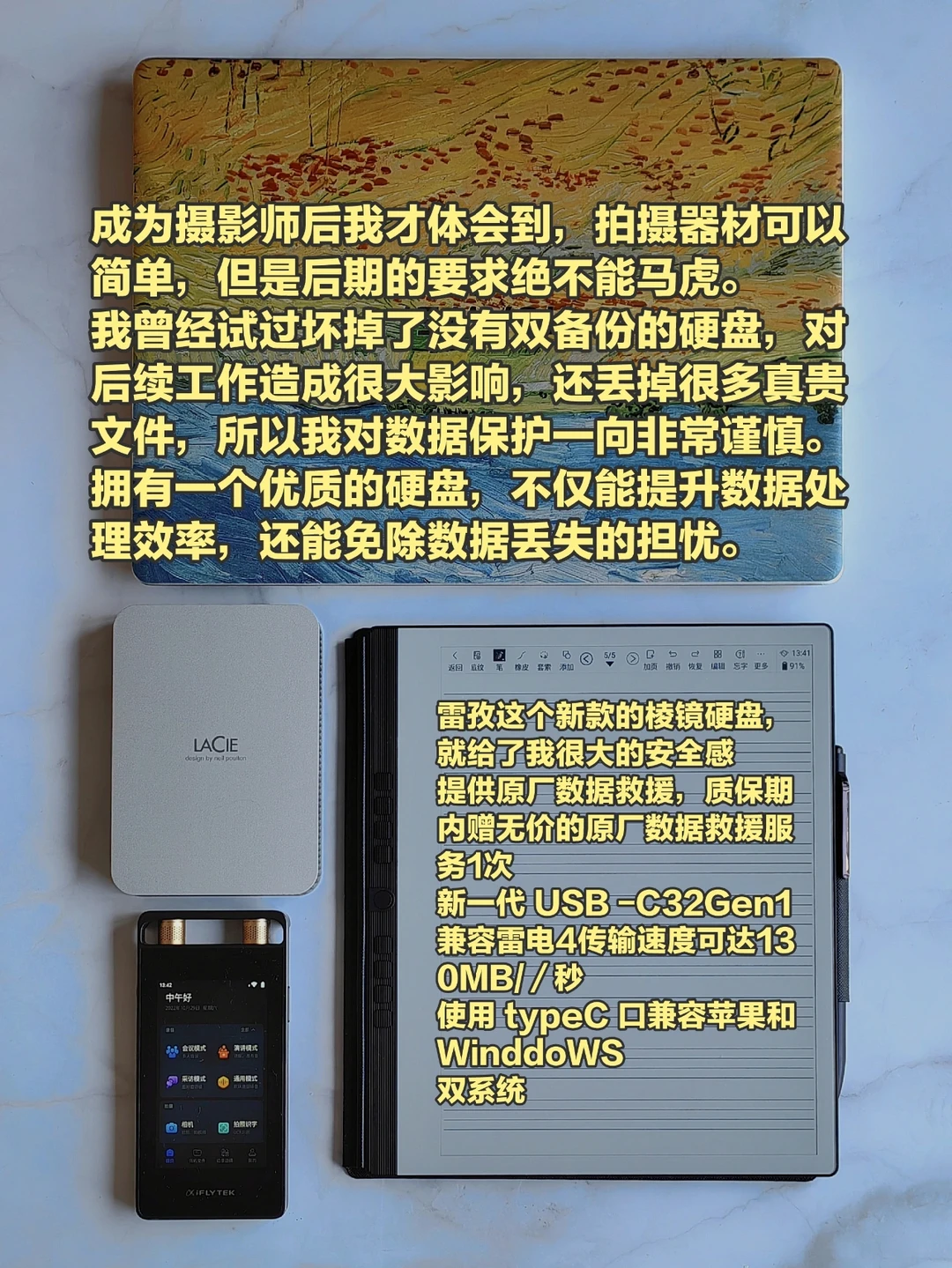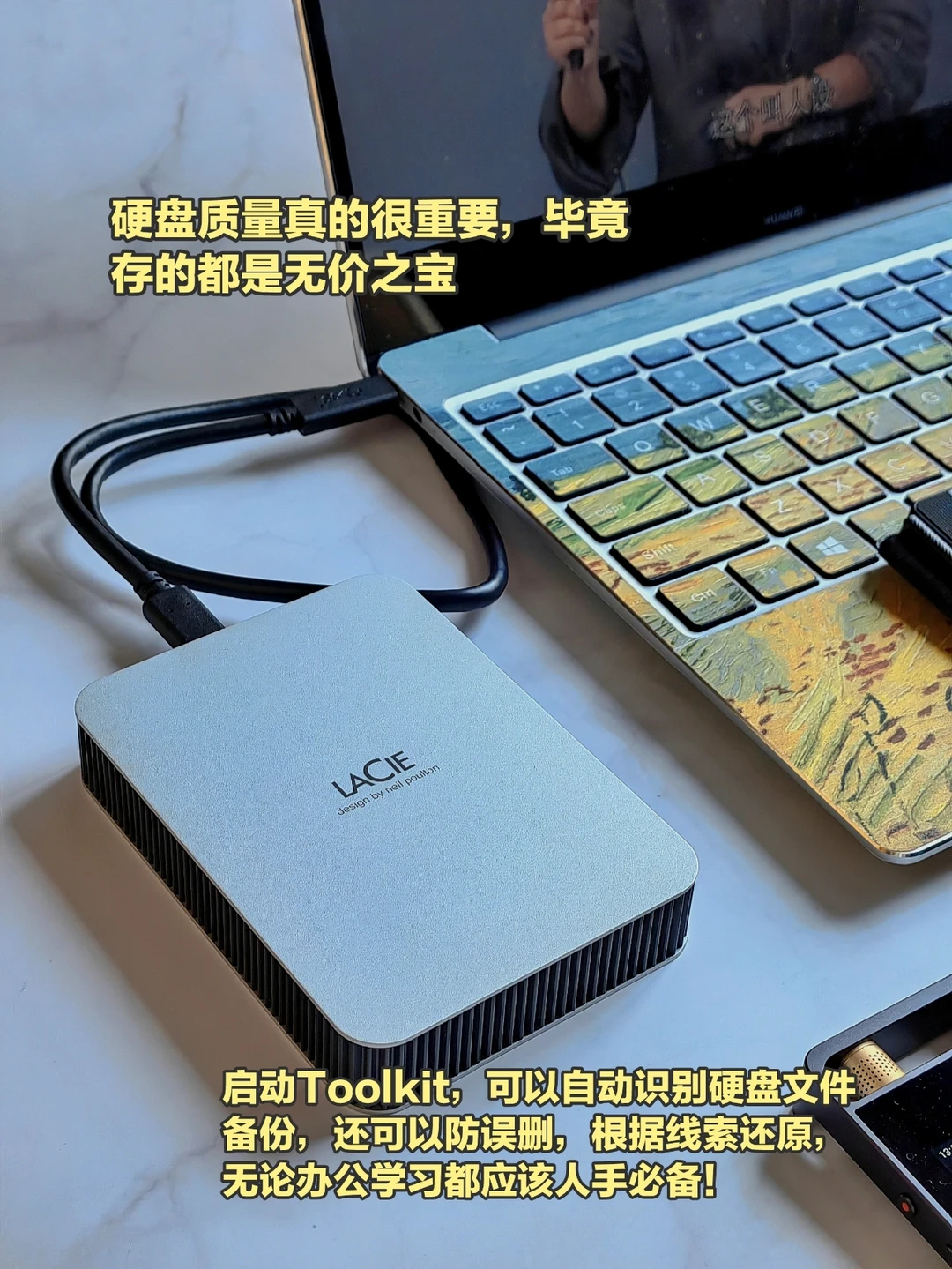 LaCie雷孜全新棱镜移动硬盘就给了我很大安全感,5TB容量足够大,同时不仅有数据救援,还支持自动备份,USB—C接口兼容性很强,直接连接手机、电脑、iPad就能用,是工作和学习的优选搭档,还有LaCie简约高气质的颜值,我也很爱!