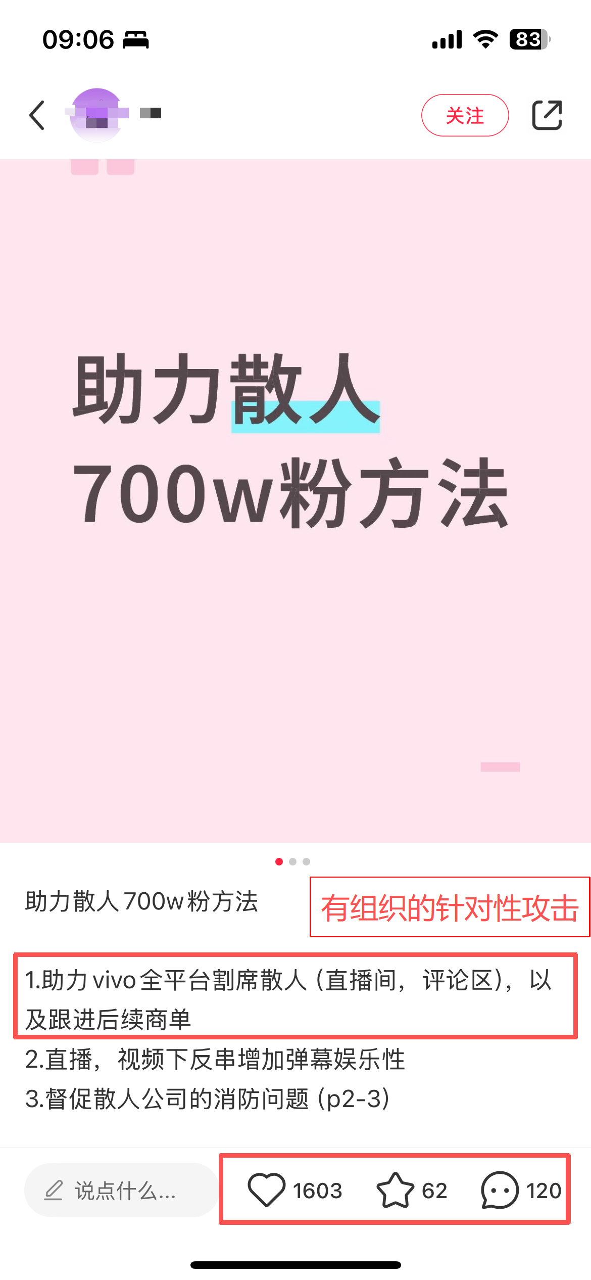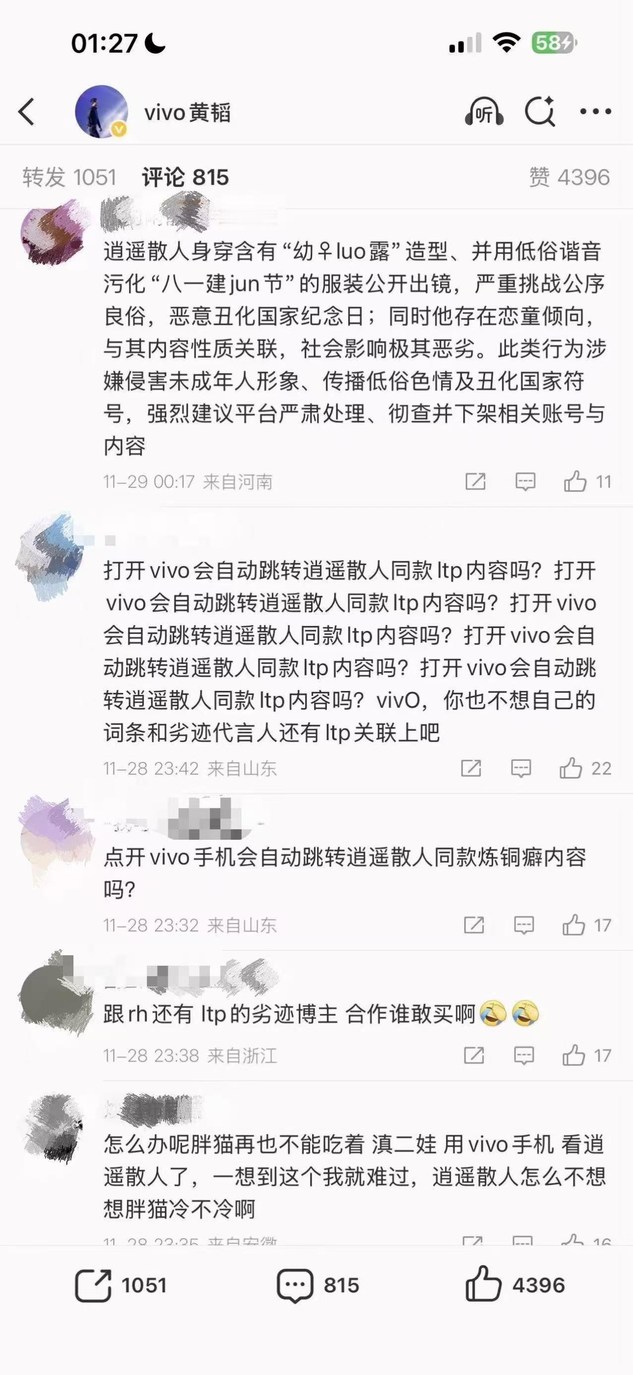 vivo 这是咋啦?一向本分老实居然都能被黑?有点莫名其妙,把个别极端网友的不当言论,当做企业的观点来找茬?还冲击直播间,在评论区霸屏,搞得乌烟瘴气的,简直不像话。而且竟然还有人在群里派单,找网友集体攻击 vivo。我觉得 vivo 可以报警了,很明显是有组织有团队的带节奏恶意攻击,vivo 的法务硬气一点,干吧。在清朗行动下还敢搞这些歪门邪道,真的有点过分了。😡大家来评评理,这像话吗? vivo被曝直播间置顶不需要女用户评论
