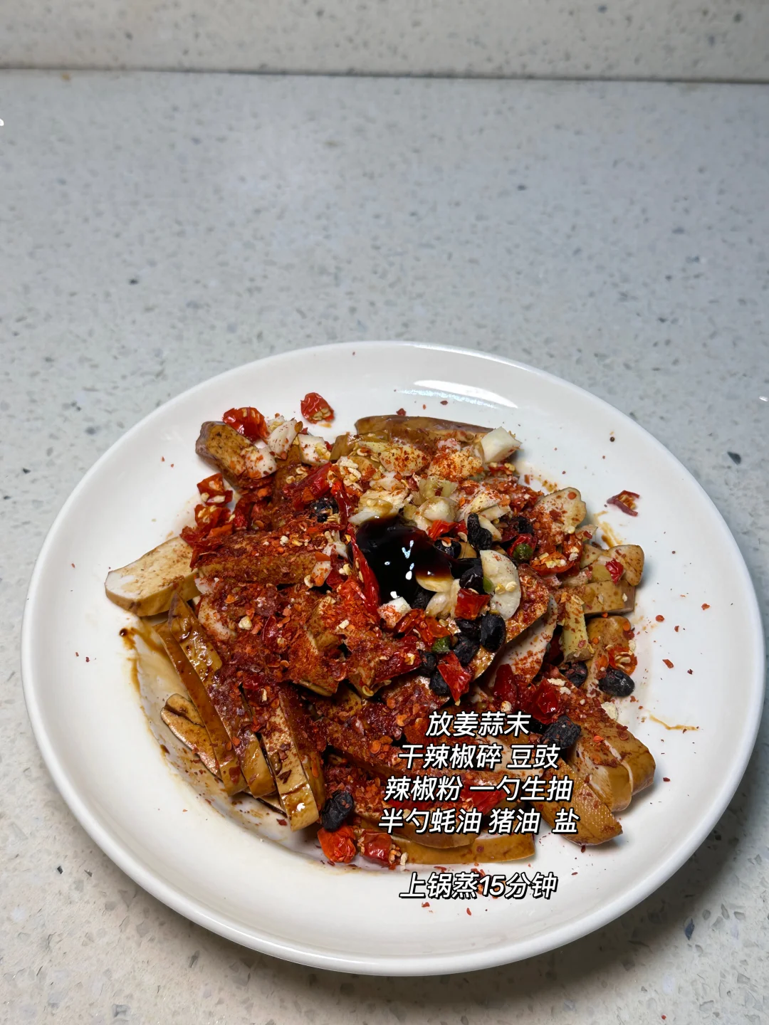 切了好多干辣椒碎,另外还加了辣椒粉 爆辣真的太下米饭了!混合猪油一起蒸好香美食小宇宙 ✨食材:香干 蒜 姜 干辣椒碎 辣椒粉 豆豉 猪油 1️⃣:香干切片加小半勺酱油拌匀上个色入个底味,放碗里撒姜蒜,干辣椒碎 辣椒粉 豆豉,一勺生抽 半勺蚝油 猪油,一丢盐上锅蒸15分钟。 时间没有限制,煮饭的时候放米饭上蒸也可以的。你们家里有剁椒的可以加一勺剁椒,加了剁椒盐就不用加了哦。蒸得越久越香,豆腐里面蒸出气孔超入味 好好吃饭呀🖖🏻