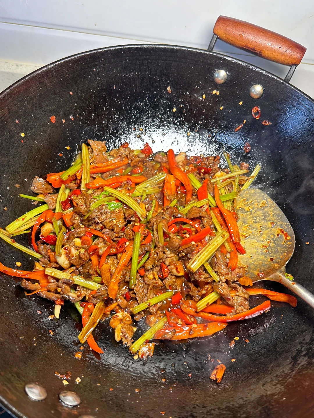 ✨食材:牛肉 芹菜 蒜 姜 小米椒 干辣椒 红椒