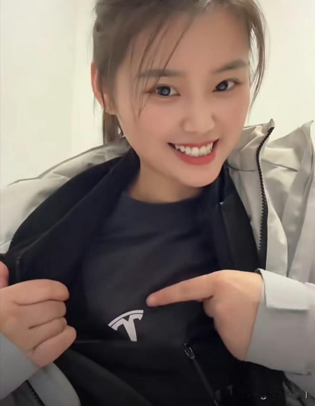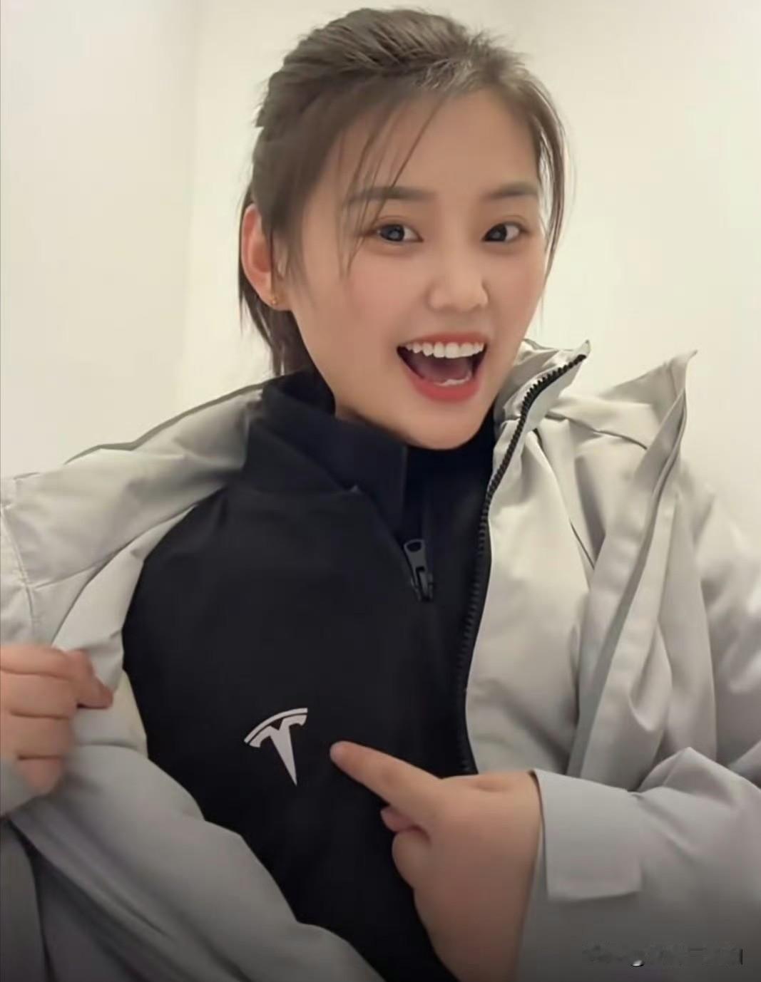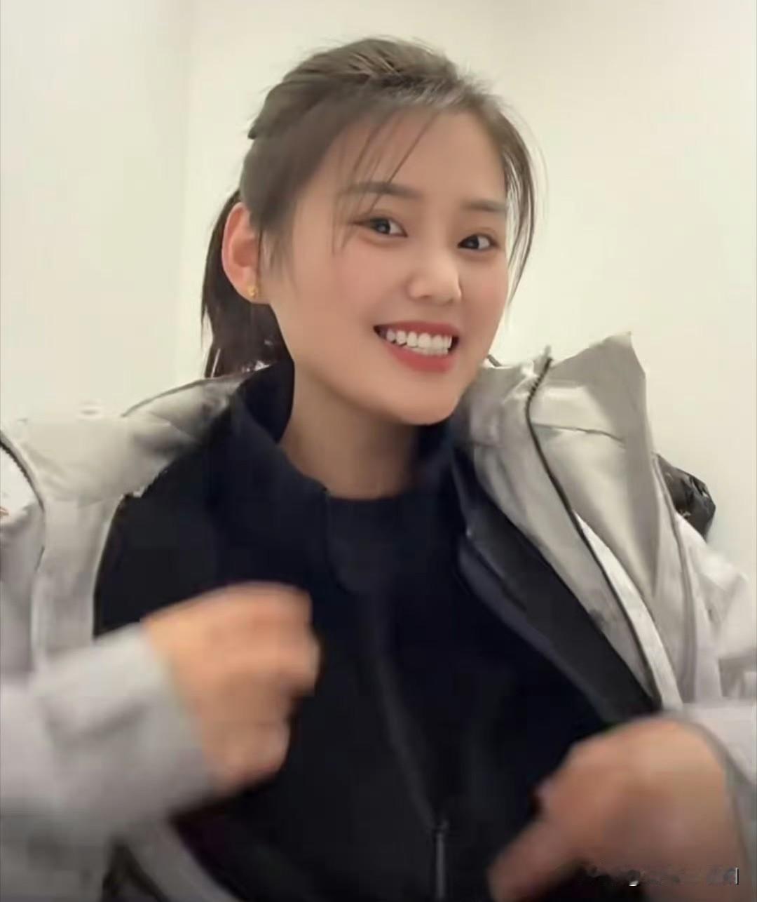 这位小姐姐穿着一件灰色外套。