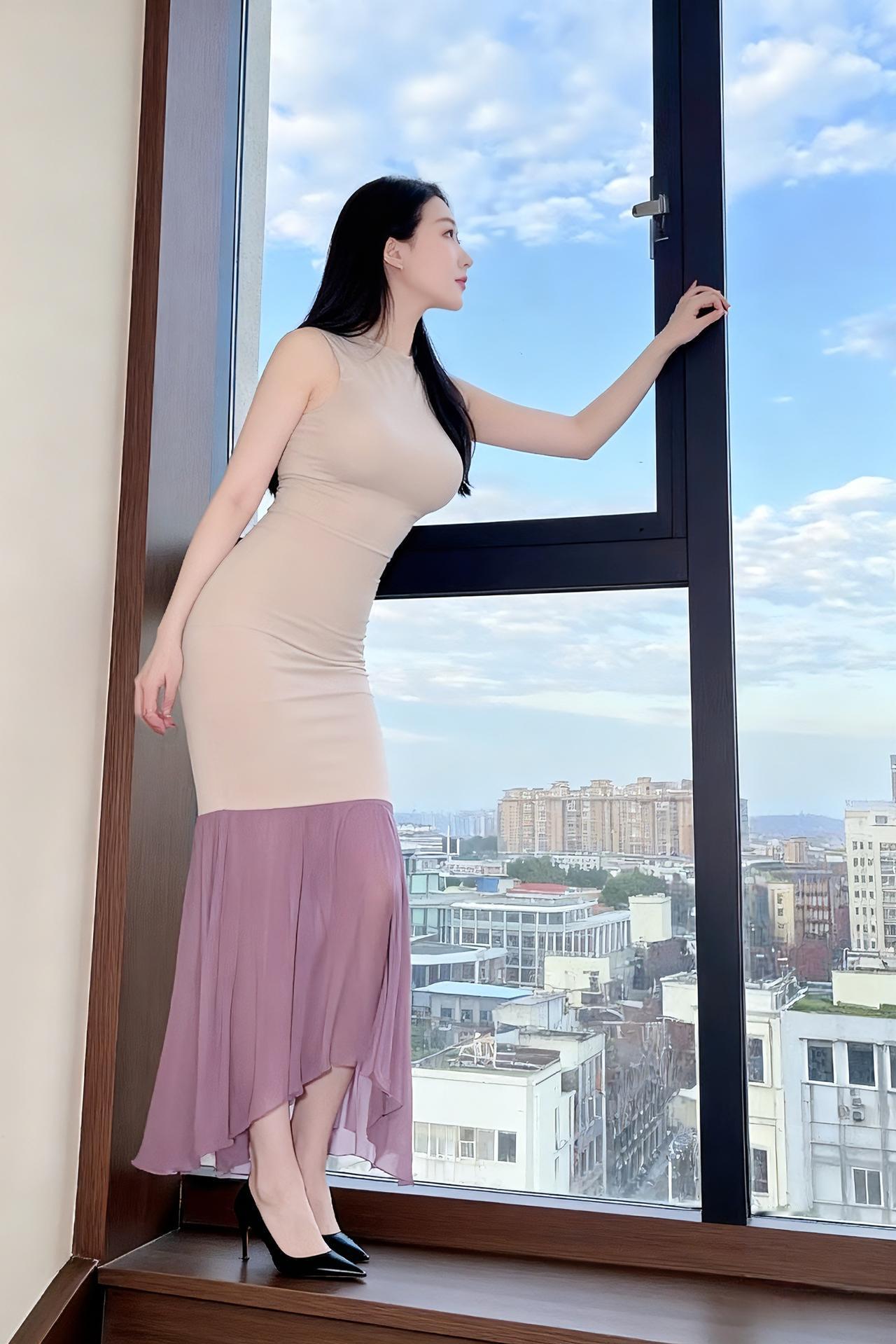 白云蓝天,优雅女郎,窗边的迷人风景。👗☁️好身材性感女神