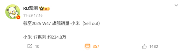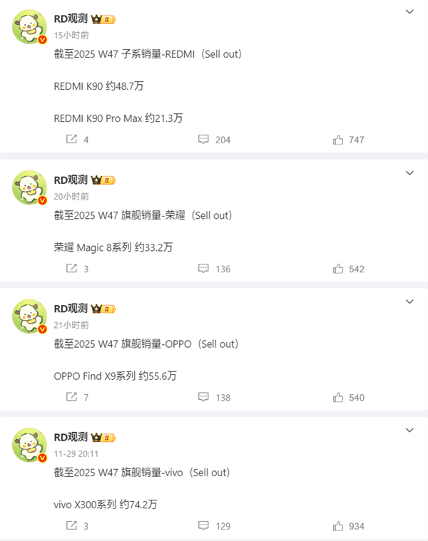 小米17系列销量已突破234万台,稳居国产旗舰销量榜首。Redmi K90系列也贡献了70万台的成绩。不过接下来要面对华为Mate80系列的挑战,毕竟Mate70系列累计激活量已超885万台,破千万指日可待。
