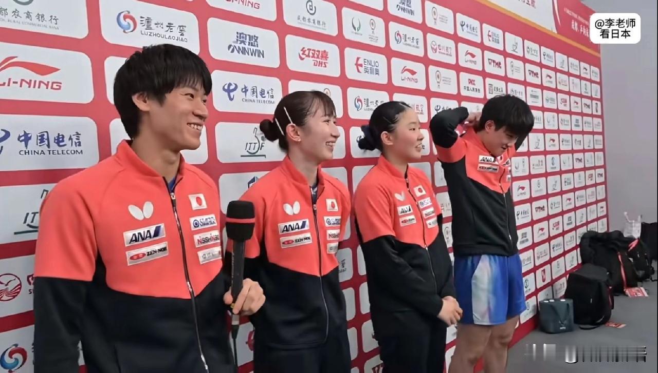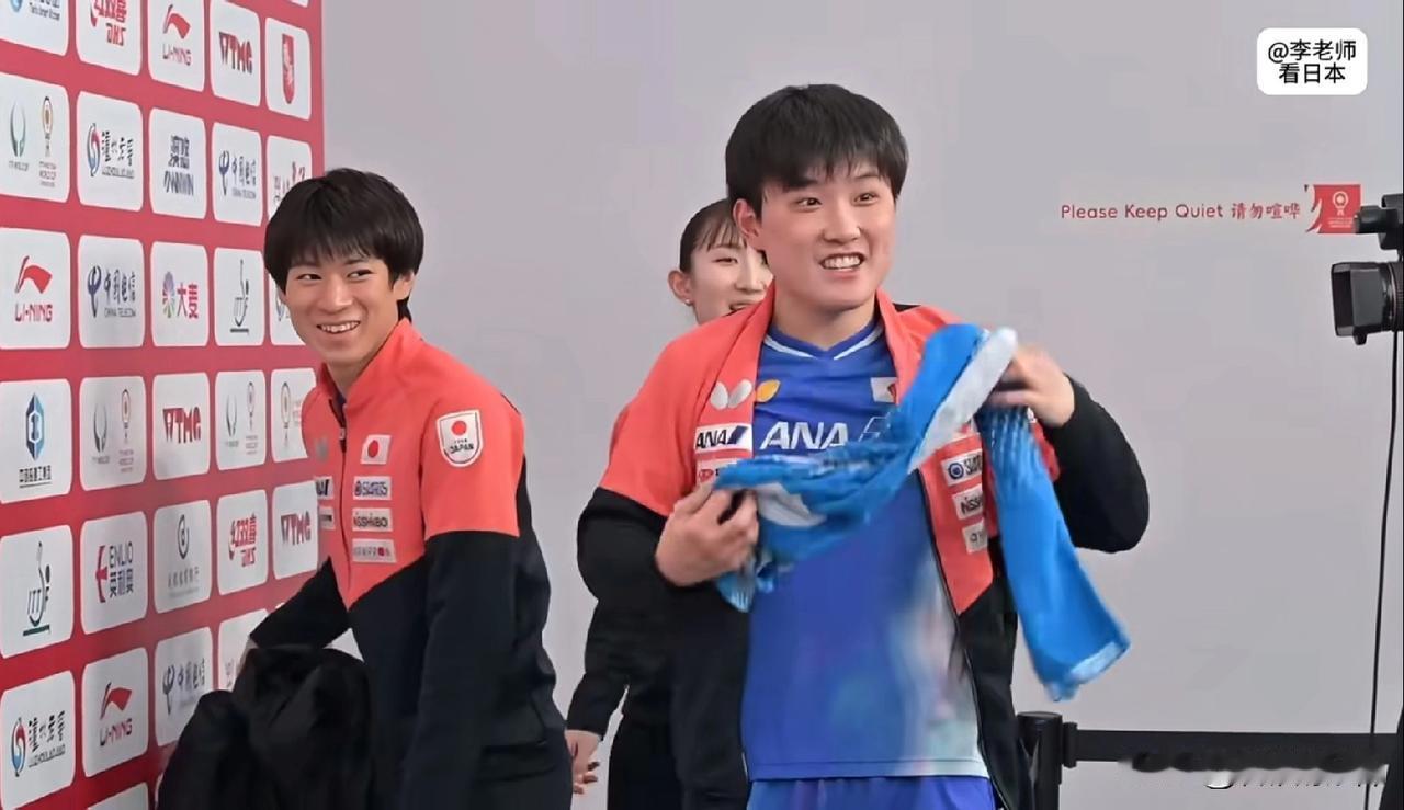 看见以工作人员的身份来到成都的吉村真晴,一脸震惊的日本队。 在昨天的首轮比赛中,日本队是8-1赢了澳大利亚队,当张本智和、户上隼辅、张本美和、早田希娜来到采访区时,一眼看到穿着西服的吉村真晴,大家都是一脸的震惊,估计他们没有想到是吉村来采访他们的吧,吉村真晴看到队友后还有点不好意思。 熟人采访欢乐多,大家看着吉村就想笑,每个人的脸上都是笑容,在采访的时候吉村还是有点不好意思,还用手挡了一下脸。在昨天的比赛中,户上隼辅/早田希娜出战了第一盘的混双,张本兄妹是打单打,后面看到女双是早田希娜和伊藤美诚,确实日本队的组合也是很多的,看到有网友说如果吉村真晴来,日本队的变阵会更多。 打团体赛的氛围还是比较好的,看到日本队的状态也很好,今年平野美宇没有来成都,看到平野分享了和好朋友一起的合影,还一起去吃了好吃的,逛街买衣服,现在的平野生活过的也很幸福啊。
