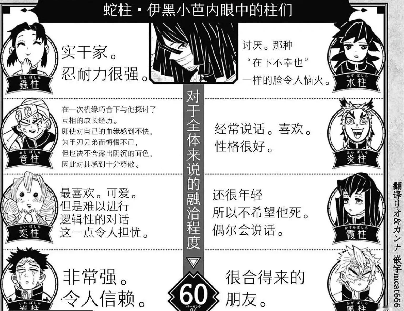 鬼灭之刃 九柱眼中的其他柱~很喜欢看鬼灭公式书里一些人物性格和关系的补充~感觉人物一下子会多了很多趣味性