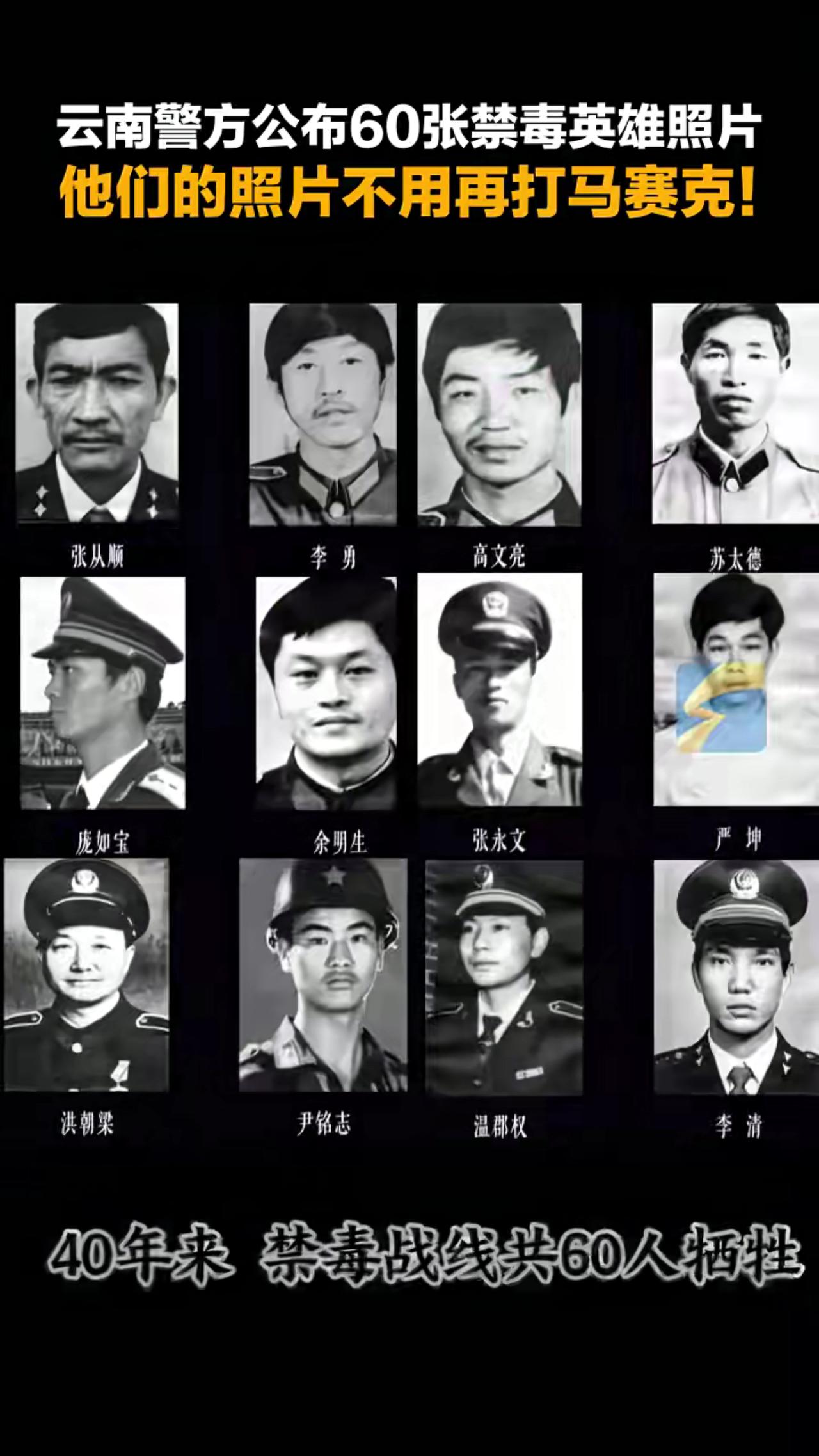今天,云南警方公布了60张禁毒英雄的照片,这一次,他们终于不用再打马赛克了。可我