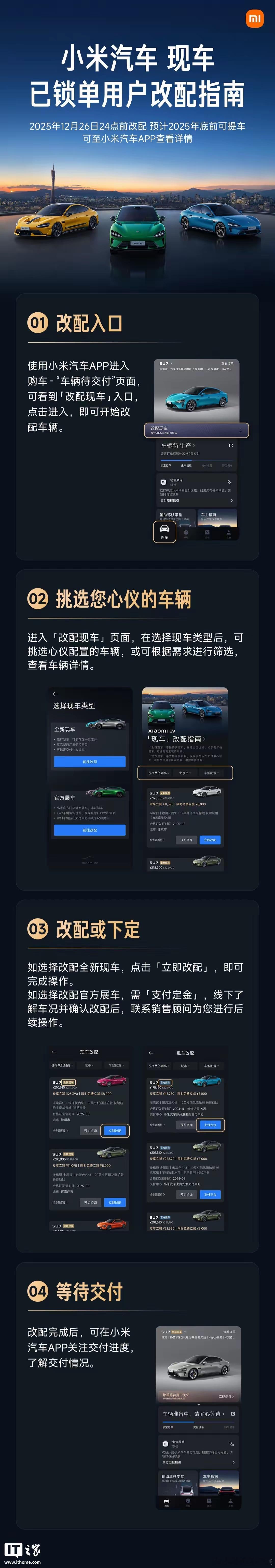 之前总刷到有人吐槽等小米汽车等好久,现在直接上现车,全新的、展车、准新车都有,还过了严格质检,带原厂质保,这不比等排产香多了?重点是能快速提车啊!已经锁单的还能优先改配,12月3号就对所有人开放了,26号前锁单年底大概率能提,跨年交付还补购置税,部分车型还有优惠。想冲小米汽车的真的可以蹲一波,现车都不用等了,而且权益还到位~