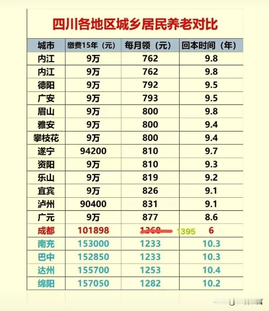 城乡居民养老划算吗?有交过或者懂的朋友吗? 今天看见四川各个城市交十五年的城乡