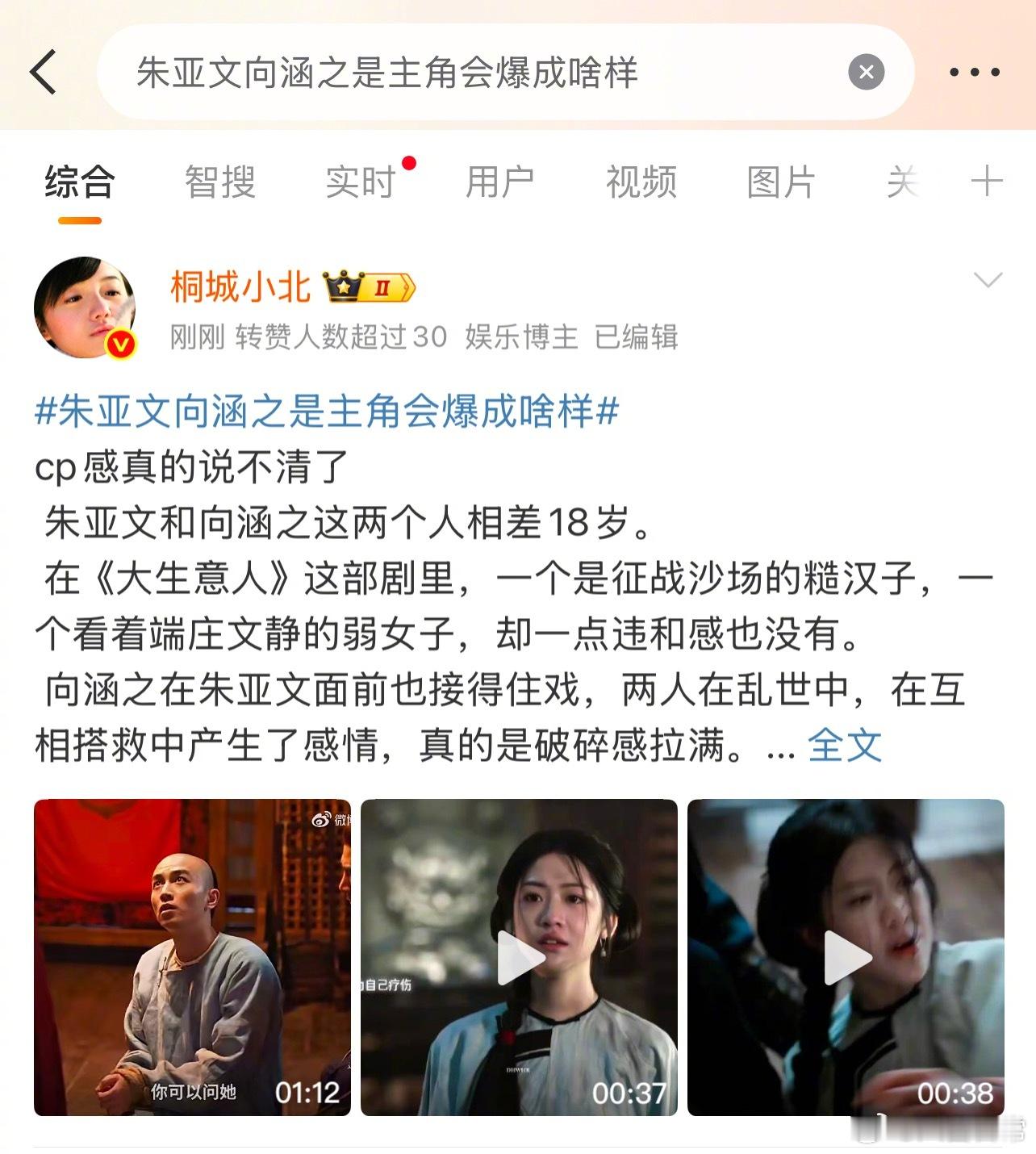 孙千没料到!朱亚文也没想到!出道才5年的00后小花向涵之,居然把《大生意