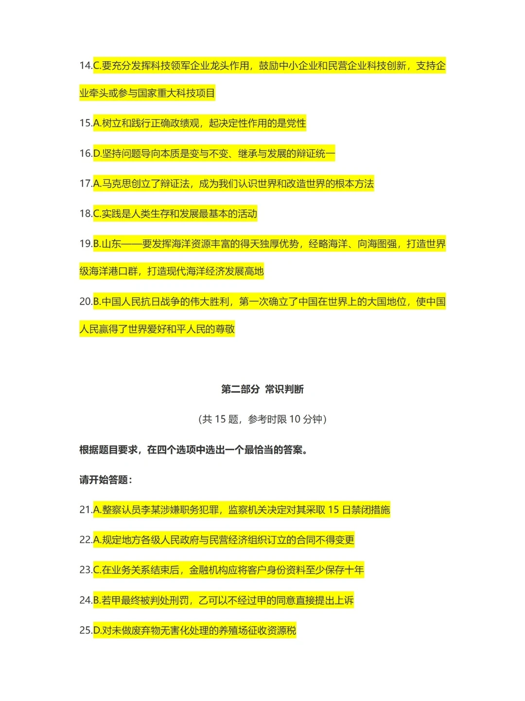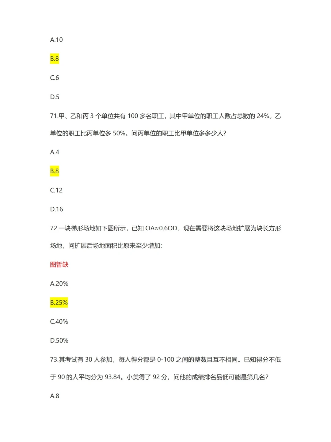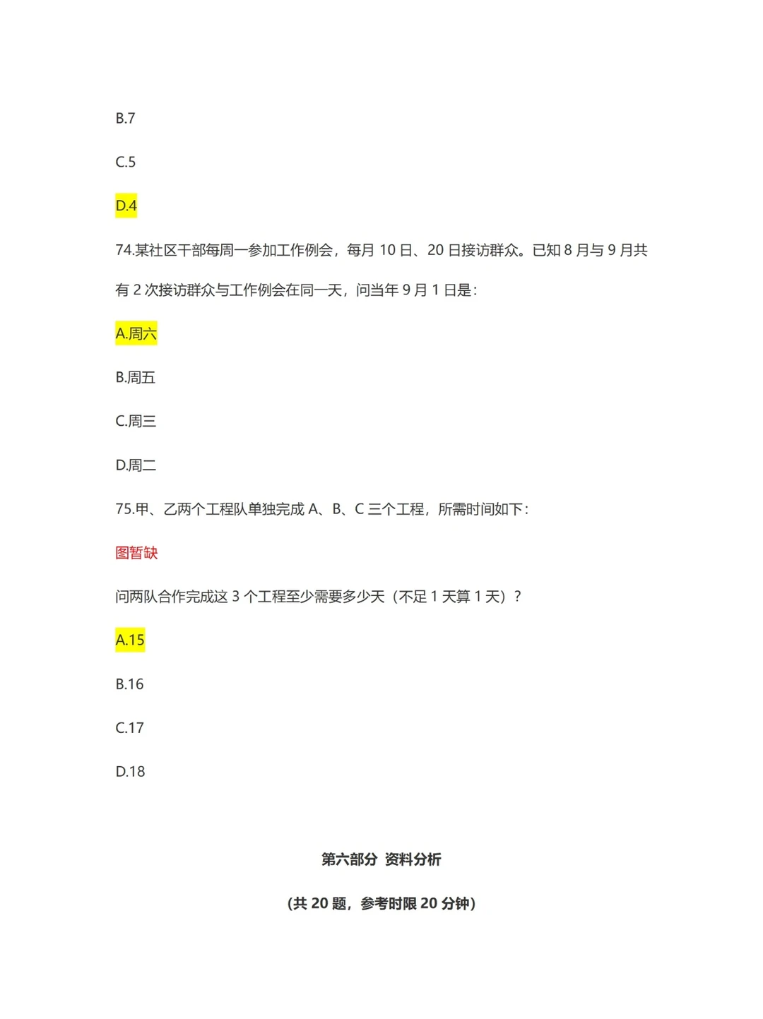 2026年国考行测答案,其中后面的十多道题没有时间做,全部选了C,不知道有没有分