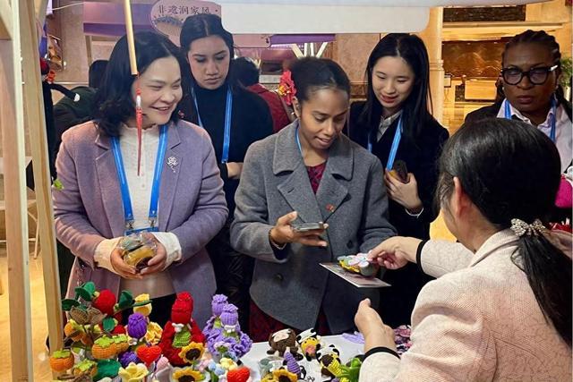 整个展览现场暖意融融,吸引了来自全国各地的参赛选手在赛事间隙观展。同时,不少游客也驻足展台,了解非遗手工。11月27日,“驻华女外交官看中国湖南行”活动代表团莅临湖湘女红展观摩,20余位外交官被琳琅满目的女红展品所吸引,不停赞叹湖湘非遗技艺的精湛高超。