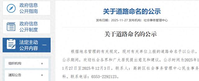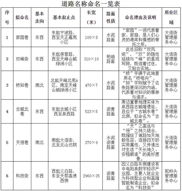 公示了一批道路命名