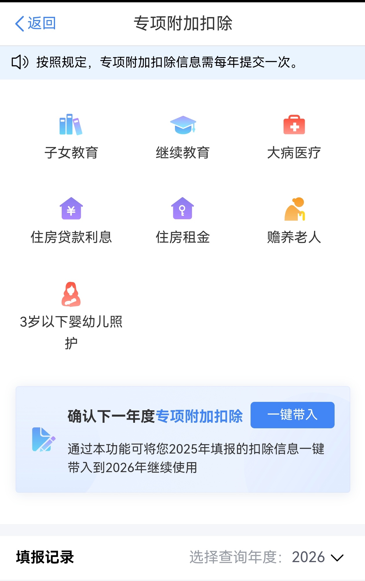 您有一笔退款12月1日开始确认 2026年度个人所得税专项附加扣除,开始确认了。