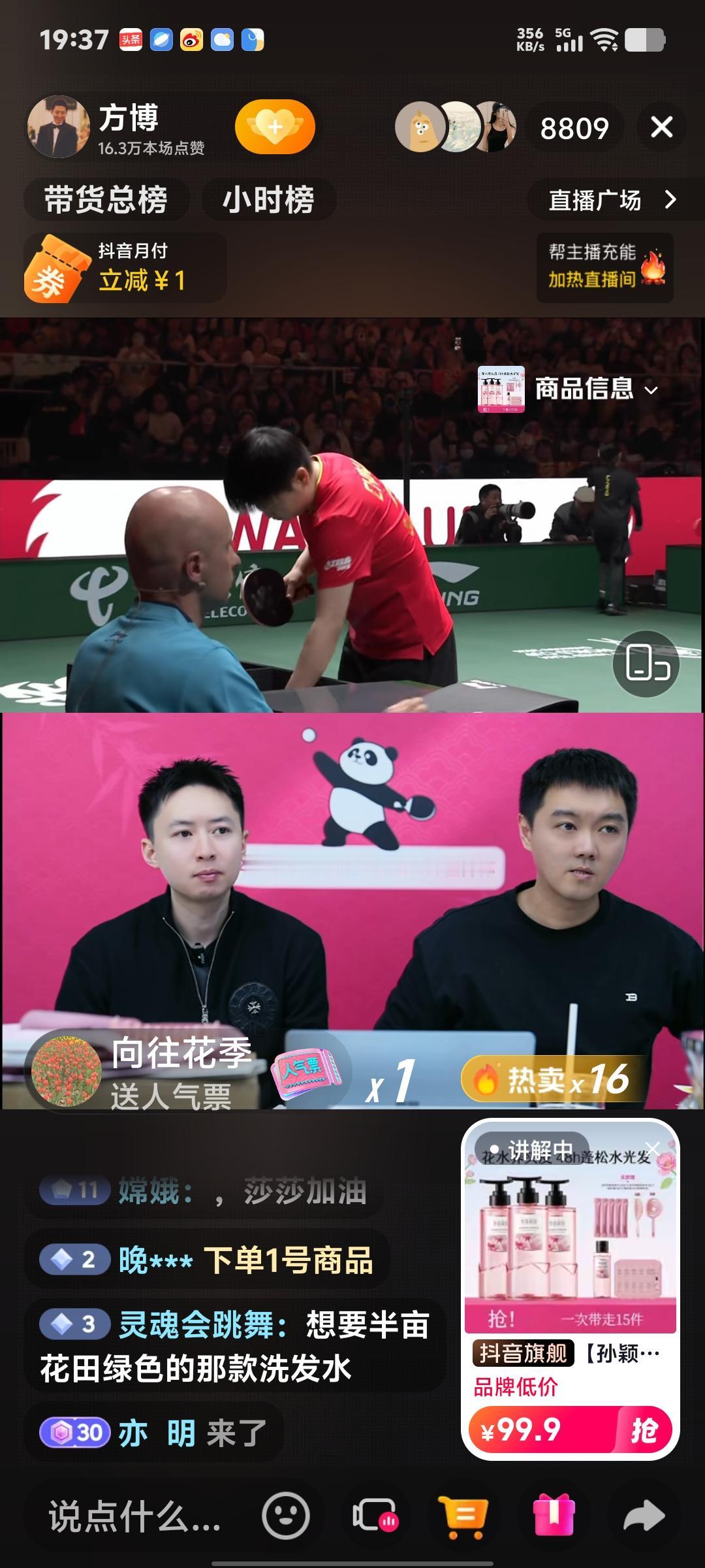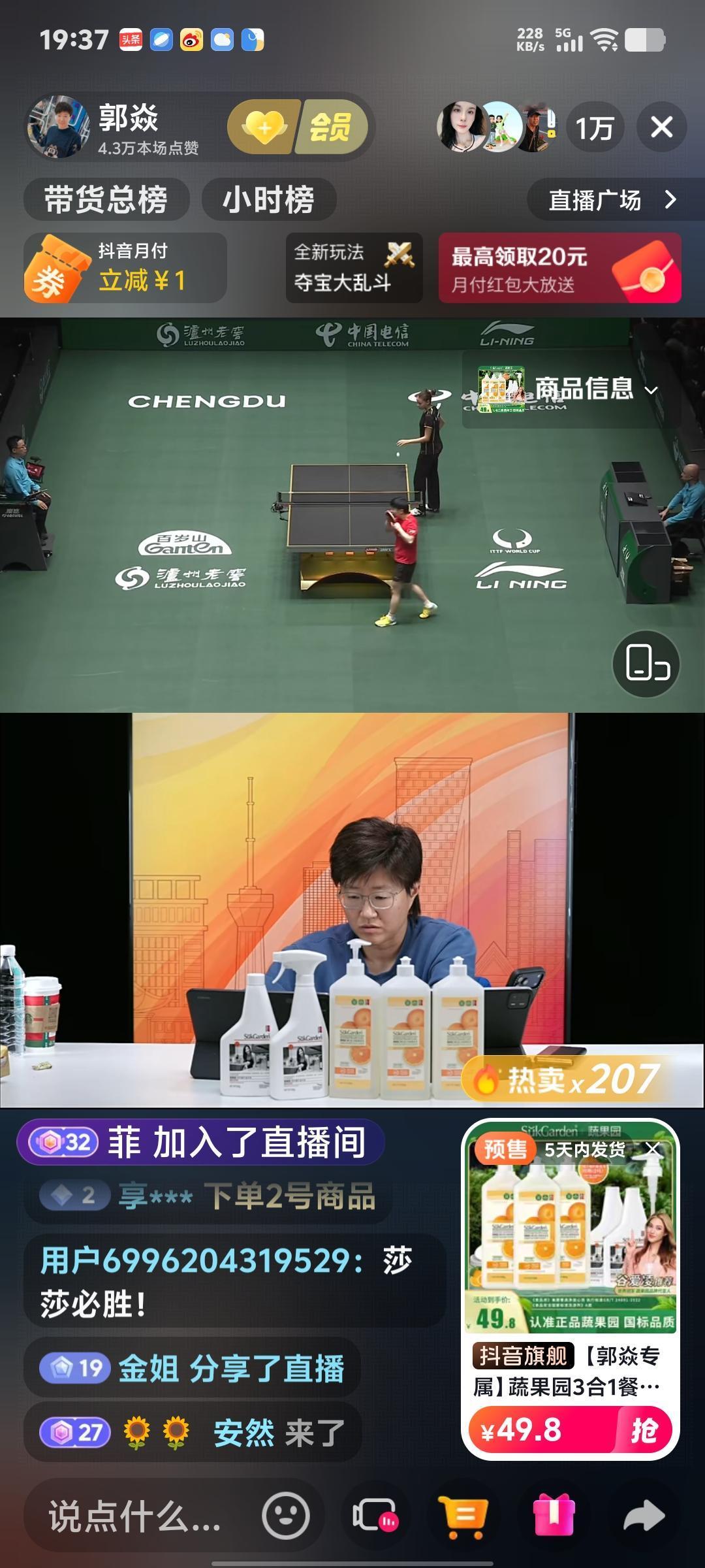 孙颖莎不愧是福娃!周雨方博郭焱直播带货超万人围观,现场呐喊沸腾,红色精灵11: