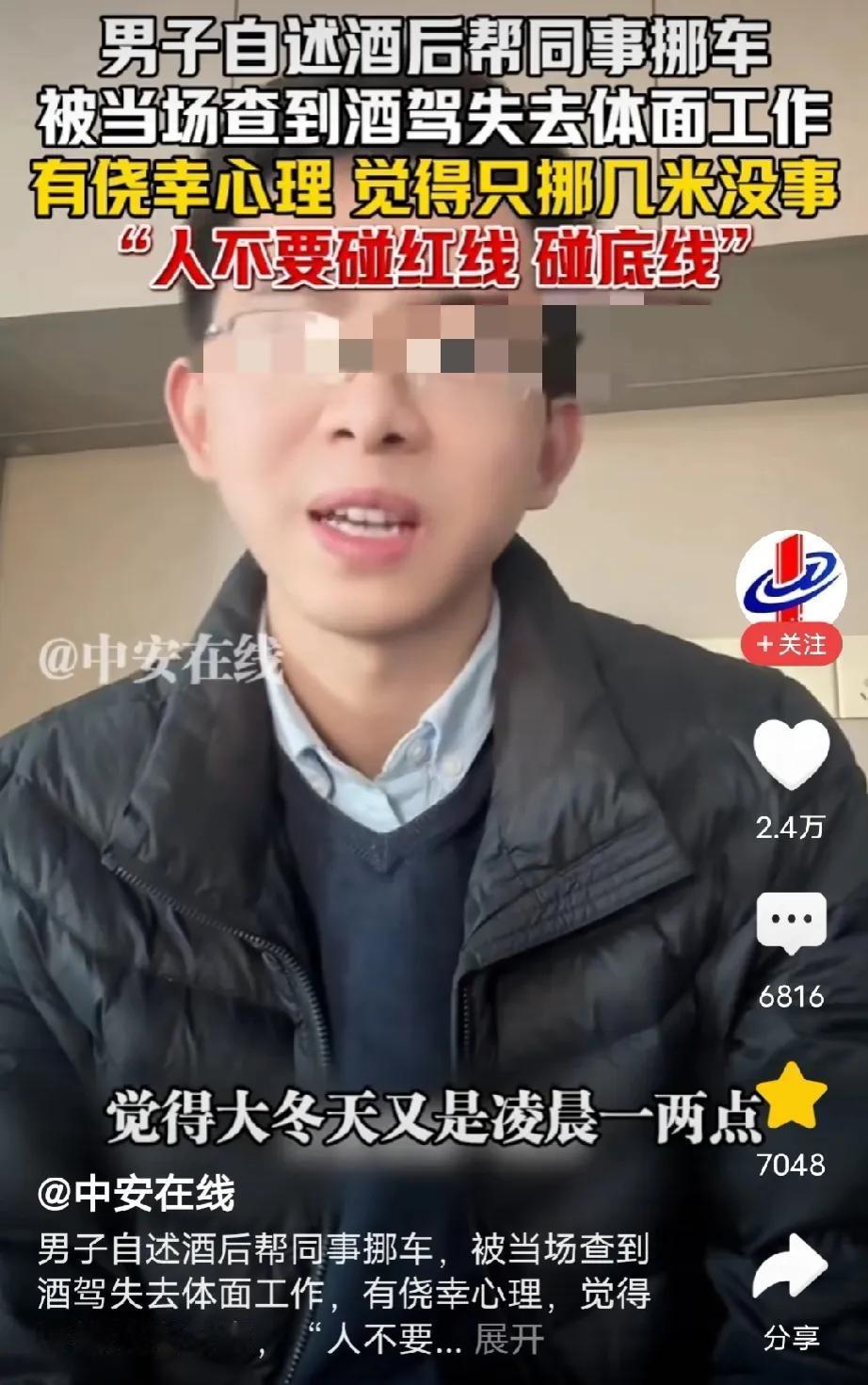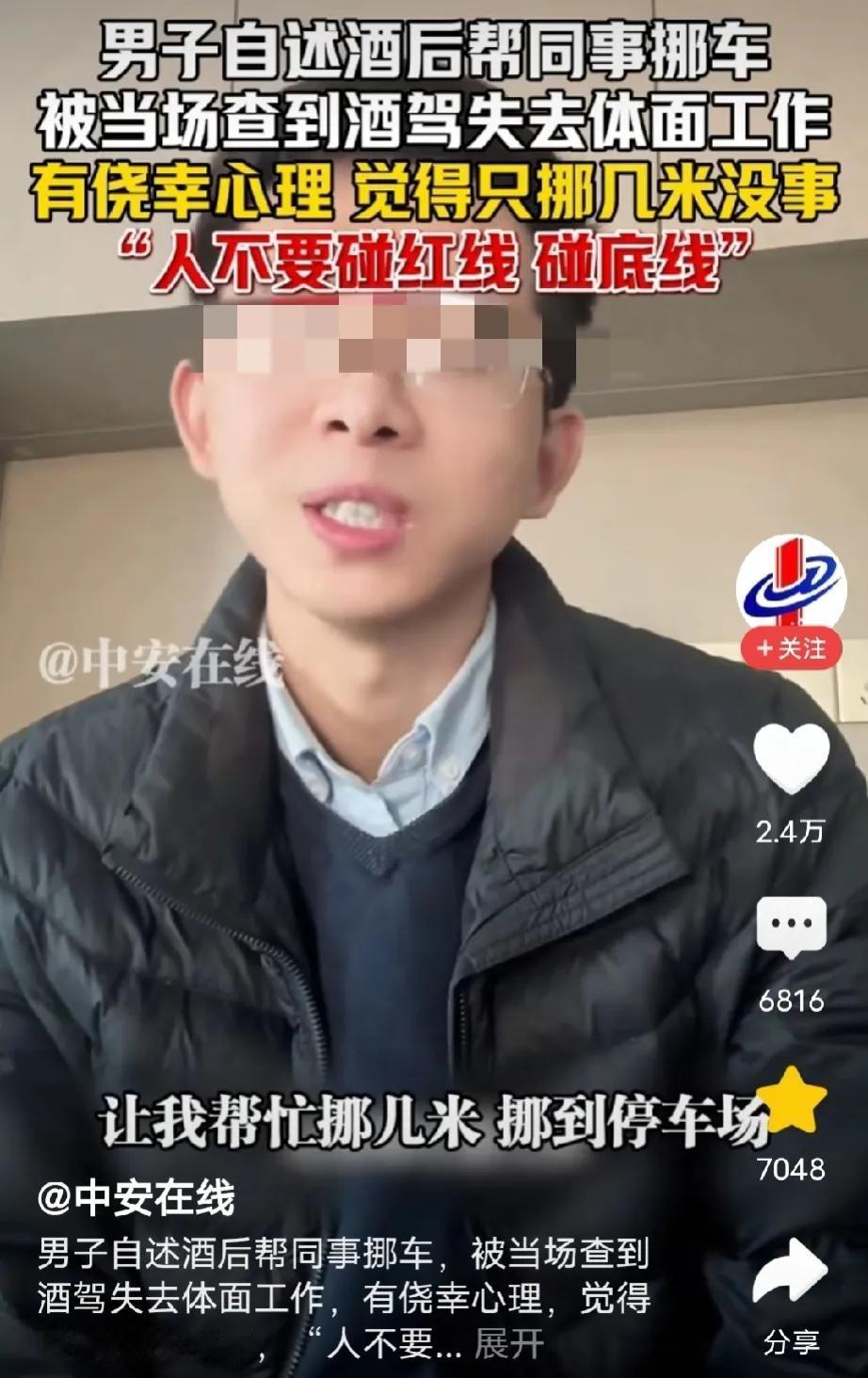 新疆,男子参加同事生日宴,喝了点酒,凌晨2点,同事说他喝得有点多,自己车子挡路了,要求男子帮忙移开,谁料,男子刚把车开出几米远就被帽子叔叔逮了,男子崩溃:一切全完了,正在提拔的节骨眼,几年的努力全白费了。网友:懂的都懂,这个生日宴分明就是鸿门宴,同事被提拔,你却被刷了。 陕西一名男子发视频称,自己年轻时因为一个失误,让他悔恨终身,至今每每想起那件事,他都觉得很后悔。 事情是这样的,男子刚大学毕业那一年刚好赶上国家政策好,被国家免试特招,去新疆做了公务员。 本来他前途一片光明,没想到,一个失误,让他丢了工作,还犯了事。 有一天,轮到男子休息,刚好那天同事生日,同事邀请男子到外面一起聚餐庆祝。 男子也没拒绝,毕竟大家同事一场,该维持的关系还是要维持,就欣然应约了。 当天晚上,因为高兴,大家都喝了不少酒,男子推不掉,也小饮了几杯。 朋友同事们难得聚在一起,大家边喝边玩,一直玩到凌晨。 男子记得,大概凌晨2点的时候,同事对男子说,他的车子停在路边,挡住人家去路了,他喝了太多酒,不醒事,而男子喝得相对少,就让男子下楼帮忙挪一下车。 其实男子心里明白得很,酒后不能开车,但是,他还是存在侥幸心理,也就十多米远,应该不要紧。 同时他考虑到,当时是凌晨两点多、大冬天的,天气很冷,帽子叔叔这个点应该不会出来查酒驾,加上同事都说到这份上了,他碍不下这个面子,还是硬着头皮下楼了。 谁料,男子上车后刚把车开车几米远,也不知道帽子叔叔一下子就很突然地从哪钻出来,对方敲了敲车玻璃窗。 男子看到帽子叔叔的那一刻懊恼不已,可是一切都已经来不及。 面对民警的检查,男子无从辩解,按要求完成呼气式酒精检测初筛,后续经法定血液检测程序,因血液酒精含量符合酒驾标准被依法认定。 男子说,那会儿刚好是在提拔的节骨眼,可偏偏在这个时候,他犯了事,最后铁饭碗没了,几年了努力功亏一篑。 就因为存在侥幸心理,他把自己的前途给毁了,即使在多年以后,他每走的一步路,都在不断地提醒自己,法律就是法律。 人这一辈子,千万不能抱侥幸心理,更不能碰底线,碰红线,人生没有后悔药,有可能因为一时的糊涂让自己陷入了不可挽回的境地。 有人说,也许那一次生日宴就是一个鸿门宴,同是喝酒为什么他不去挪,偏偏让你去,最后,同事被提拔,你却被刷掉了。 也或许只是巧合,但是害人之心不可有,防人之心不可无。 从情理层面看,男子的遭遇既令人惋惜,也折射出多重现实困境。 作为职场人,他碍于同事情面赴宴饮酒,面对“挪车”请求时,既因“仅几米远”的侥幸心理放松警惕。 又因凌晨两点的时间、寒冷天气产生“不会查酒驾”的误判,最终因“抹不开面子”迈出危险一步,本质是人情社交与规则意识的失衡。 他的崩溃与悔恨源于多年努力因一时糊涂付诸东流,尤其正值提拔关键期,这种代价更显沉重,符合大众对“一步踏错满盘皆输”的共情。 而网友“鸿门宴”的猜测,虽无实据却反映出职场竞争中的复杂心态,同事明知酒驾违法,仍让饮酒后的男子挪车,无论是否出于故意,都未尽到提醒义务,存在明显不妥。 但抛开恶意揣测,此事更凸显“防人之心不可无”的处世之道,也警示成年人需在人情往来中坚守底线。 情面不能凌驾于法律之上,侥幸心理终究会败给规则,一时的疏忽与心软,可能换来无法挽回的后果,这正是该事件最令人唏嘘的地方。 从法律角度上来说,酒驾绝非“小事”,而是明确的违法行为。 《道路交通安全法》第91条规定,饮酒后驾驶机动车的,处暂扣六个月机动车驾驶证,并处一千元以上二千元以下罚款,且饮酒驾驶会被记12分,同时作为公务员,此类违法行为还会触发政务处分相关规定,导致职务晋升受限甚至被辞退。 本案中,男子饮酒后在公共道路上启动机动车并行驶,无论距离长短,都已构成“驾驶机动车”的核心要件,经血液检测确认酒精含量符合酒驾标准,完全满足该条款的适用条件,其“仅挪车几米”的辩解不能成为免责理由。 法律并未对酒驾的行驶距离作出豁免规定,只要在道路上实施饮酒后驾驶行为,即应依法受到处罚。 《刑法》第133条之一,关于危险驾驶罪的规定,在道路上醉酒驾驶机动车的,处拘役,并处罚金,同时相关司法解释进一步明确,血液酒精含量达到80毫克/100毫升以上即属于醉酒驾驶。 男子虽被认定为酒驾,未达到醉驾的刑事立案标准,但该法条清晰划定了酒驾与醉驾的法律边界,警示其行为已接近刑事犯罪门槛。 即便未构成刑事犯罪,其酒驾行为已侵害道路交通安全管理秩序,威胁不特定多数人的公共安全,符合危险驾驶行为的本质特征,这也是其作为公务员被严肃处理、晋升资格被取消的重要法律依据。 对于这件事,大家怎么看呢? 关注@猫眼学法 品读案例故事,学习法律经验。