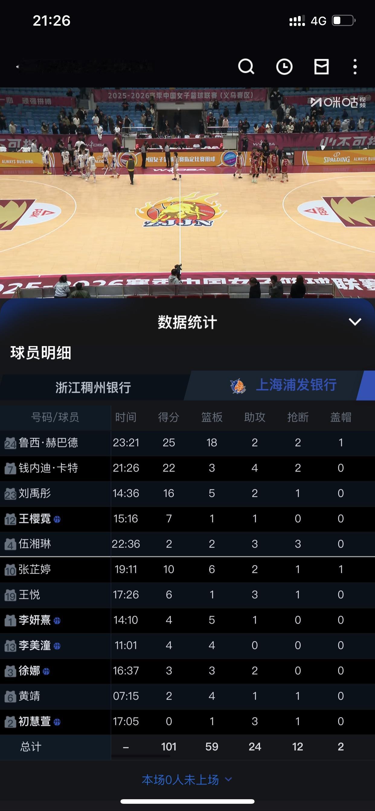 上海女篮赢的新赛季开门红! 以101:71客场击败浙江女篮。 刘禹彤终于登场,上场14分多钟,命中率高达75%,砍下16分5板2助一断! 不过,上海女篮两位外援更是大杀四方,双双砍下20➕,其中赫巴德更是大号两双,即25分18板 浙江女篮本赛季因为是全华班,虽然几个主力球员都得分还可以,但实力本就要差一筹,所以只能是接受赛季首败!