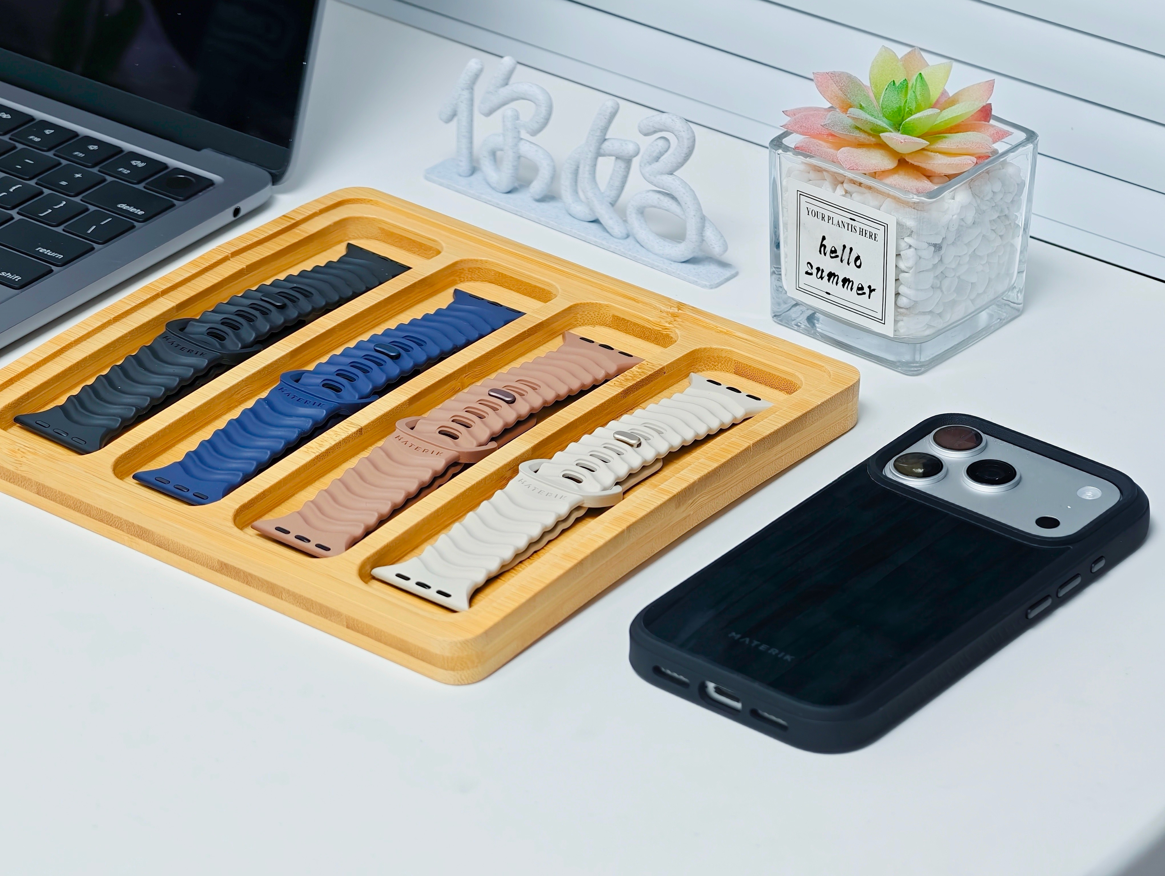 【点赞评论抽个同款表带】 收到了一波来自Materik 品牌做的数码配件,这是一家主打时尚风格的小众品牌,整体产品还是蛮有艺术感的。Apple Watch表带跟苹果官方海洋表带是同款氟橡胶材质,手感很好,表带的纹理做了防滑处理,日常抬手、运动时都不会轻易滑位。整体外观设计也很时尚。手机壳也蛮有意思,背板是一块钢化玻璃,内部的流体纹理是手工做的,每一个手机壳都是独一无二的,兼容磁吸生态,很有那种ins的风格。怎么样,喜欢吗?