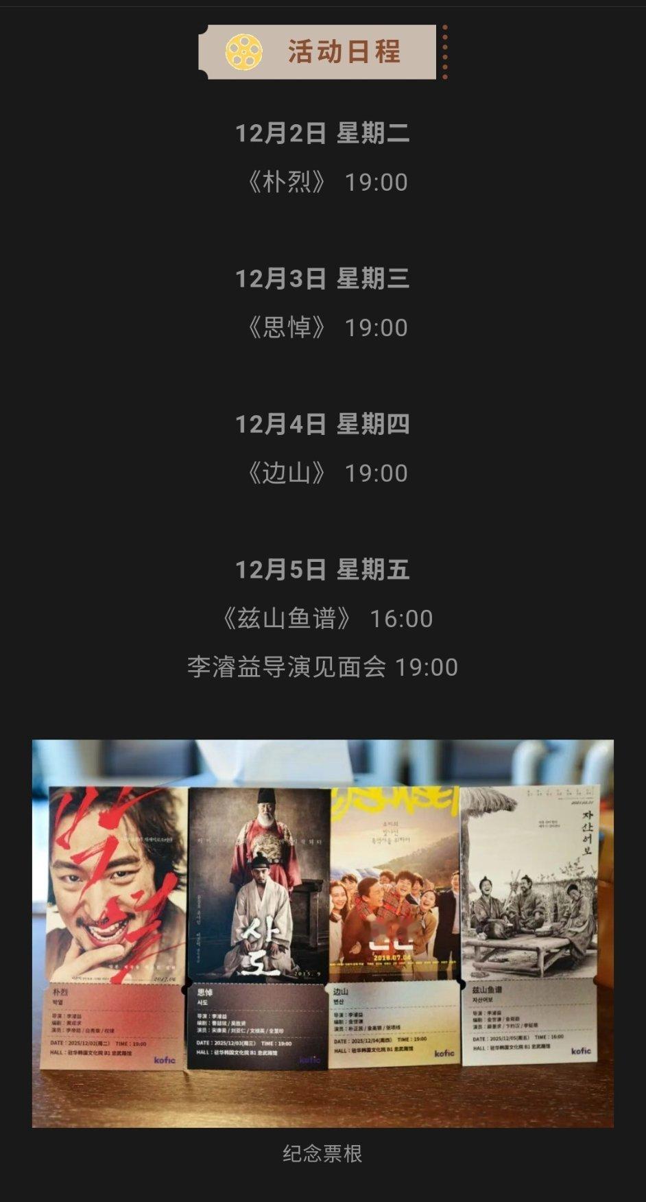 影展 12月2日至12月5日,韩国电影振兴委员会将与驻华韩国文化院一起,为大家带来李濬益导演作品展映会(北京),并将于12月5日邀请李濬益导演莅临现场与观众进行映后对谈,感兴趣的可去同名公众号预约观影!。