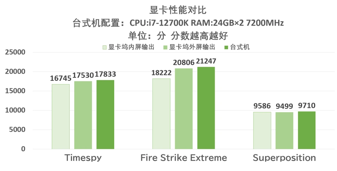 令人吃惊的是,虽然能够预想到损耗会比较小,但没想到在内屏回传的情况下,使用RTX4070独显,和台式机状态也仅有6%左右的理论损耗,要知道这还得考虑到台式机与笔记本的CPU规格以及性能释放差距,所以这个表现是令我满意的。[哇R]