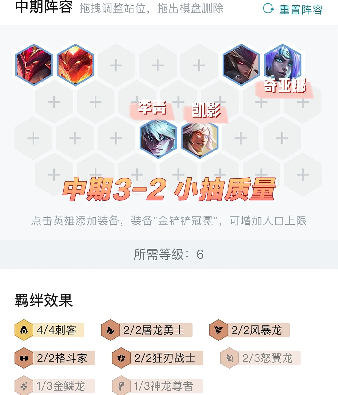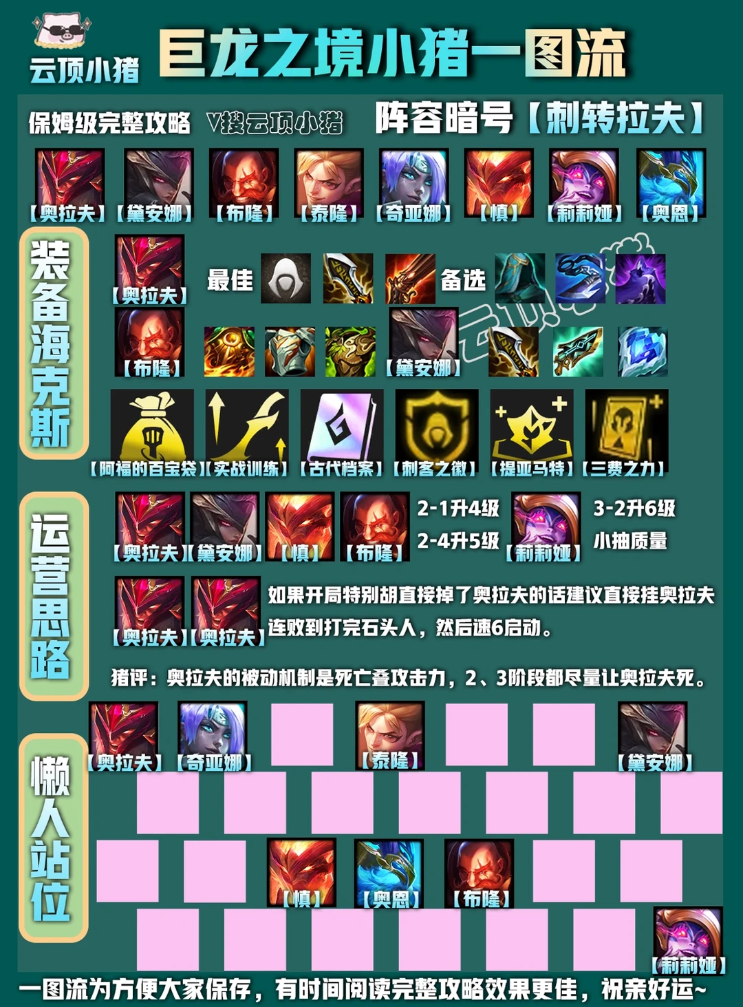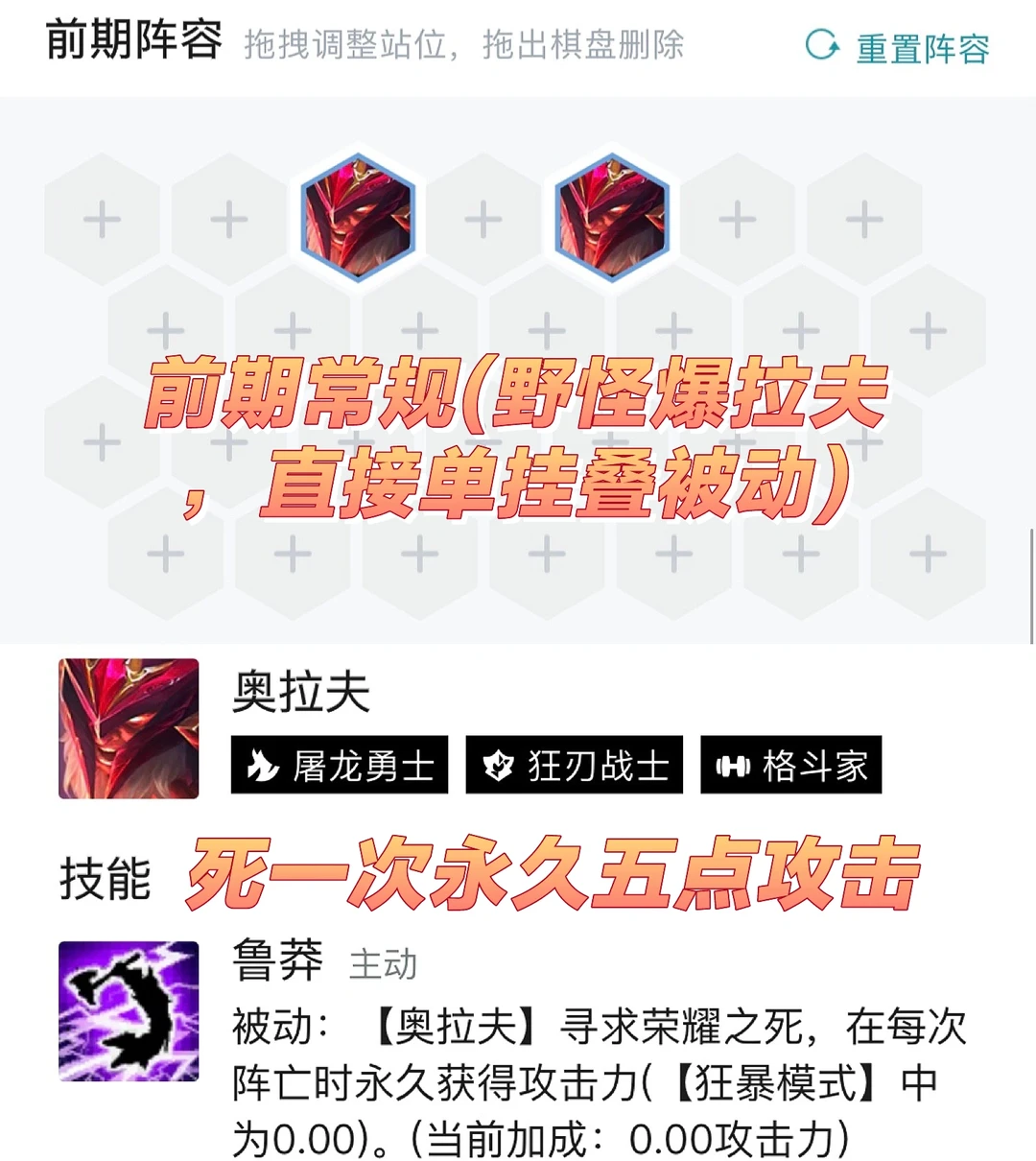 前期自然升级,连败就在3-2启动,抽到图片6人口的配置,奥拉夫能二星最好,然后继续存钱上7。