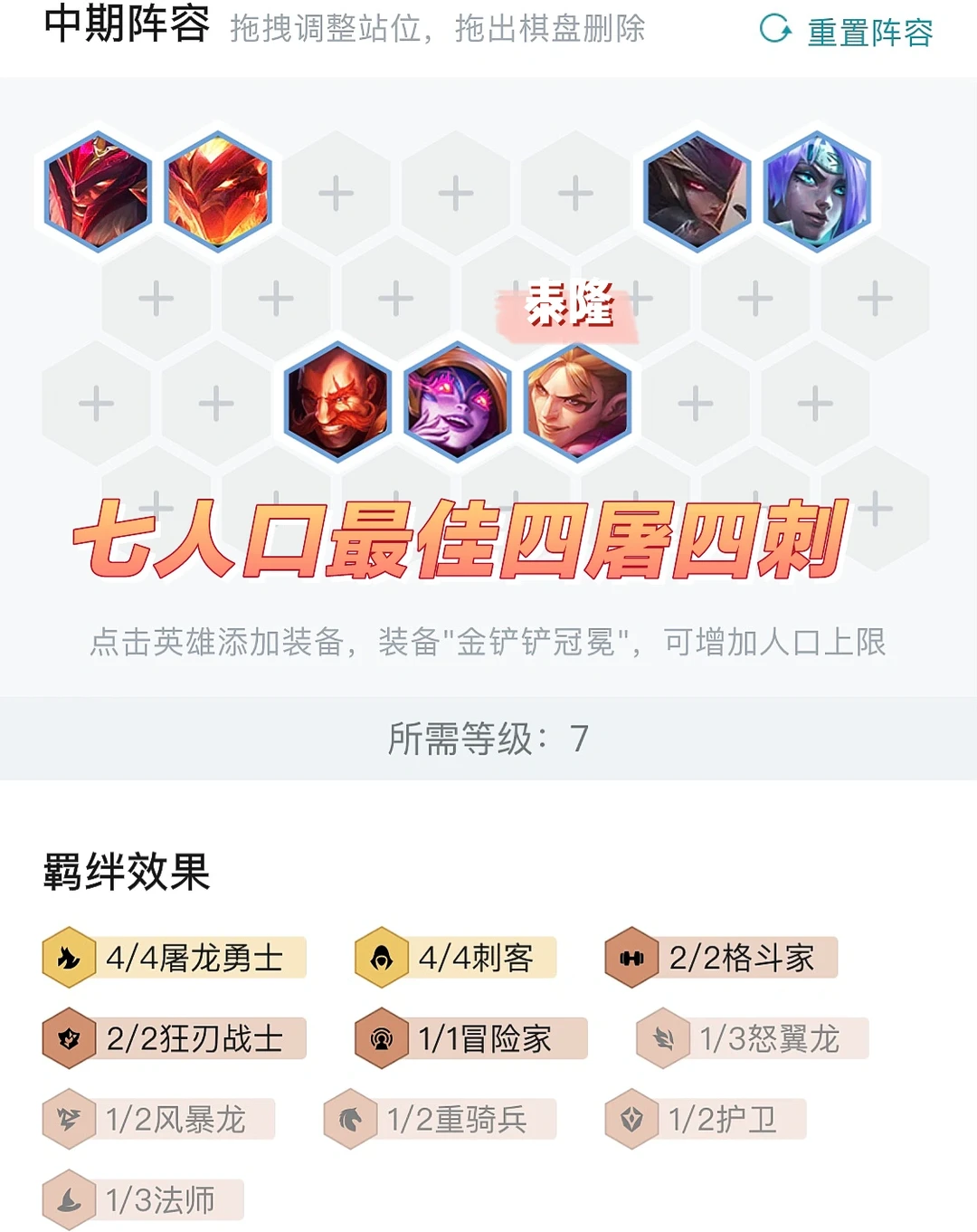 如果在7级升8级过程中,血量掉的很多(45以下)就在7人口直接追三星拉夫和皎月,只要出来了5阶段都是无敌的。