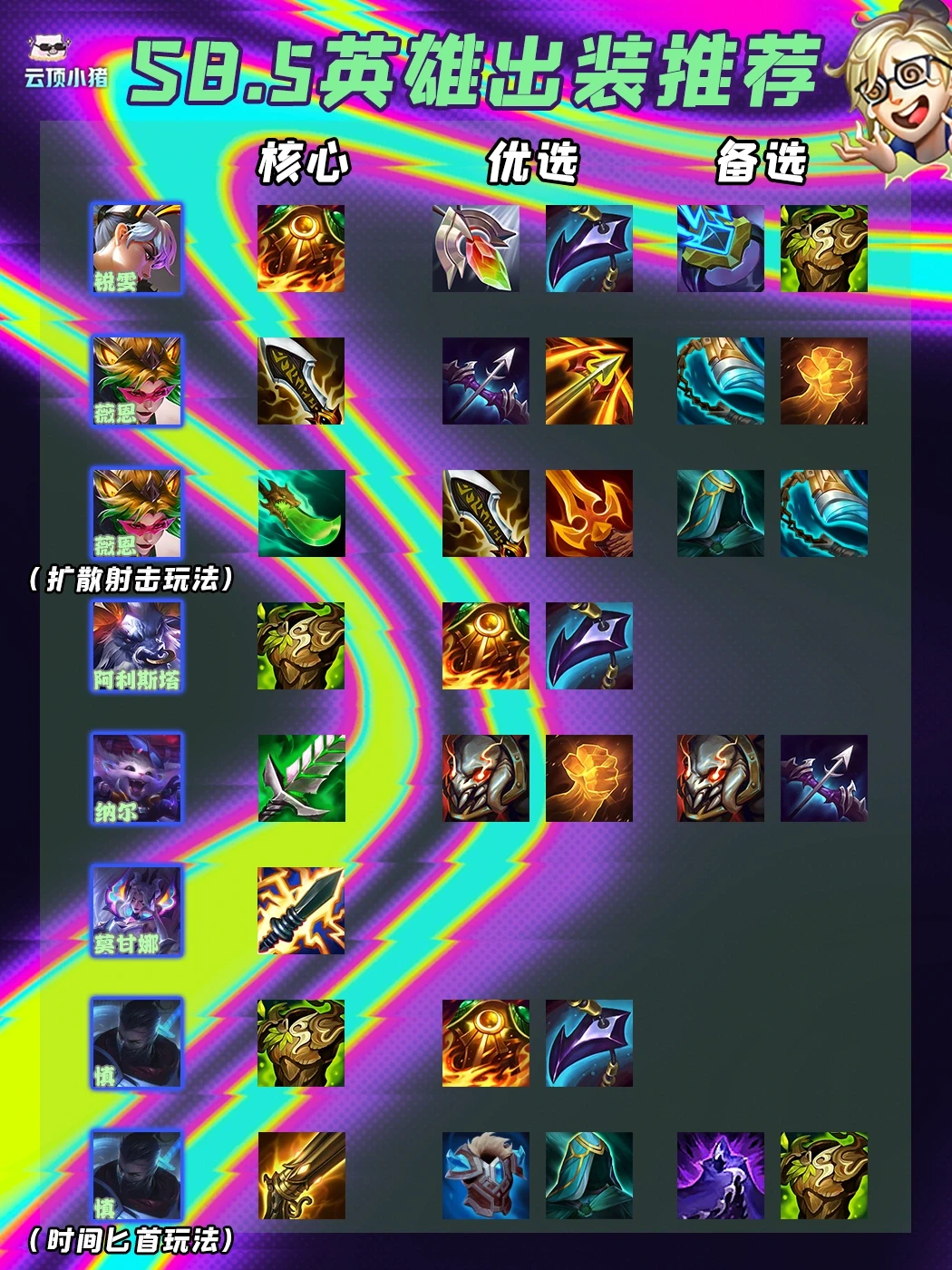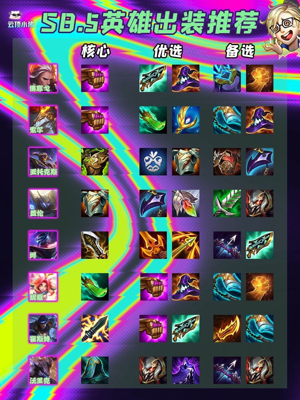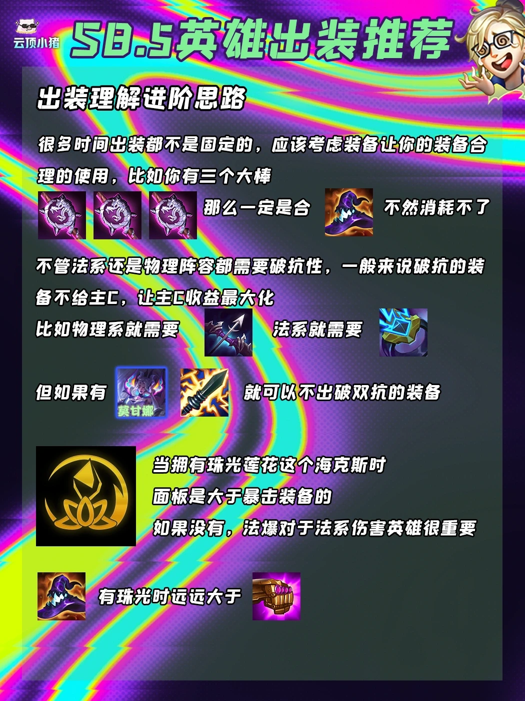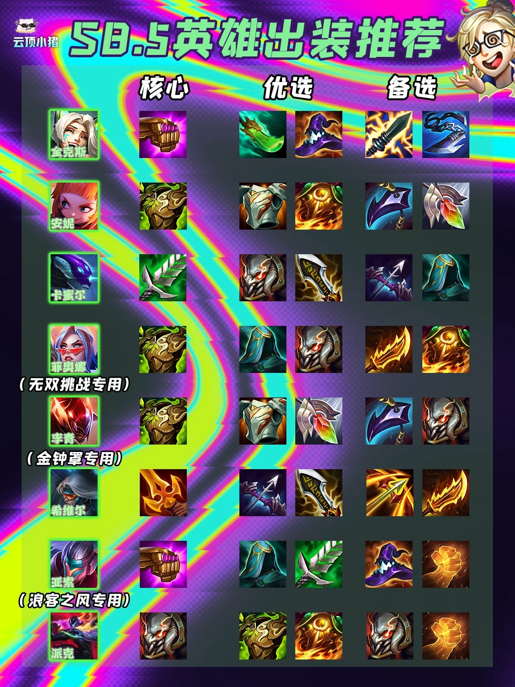 每个赛季都有小伙伴问关于出装的问题,本来早就该出出装思路理解了,因为备赛的原因拖忘了,今天就来分享一下当前版本全英雄的一个出装推荐和一些关于装备理解的小思路。