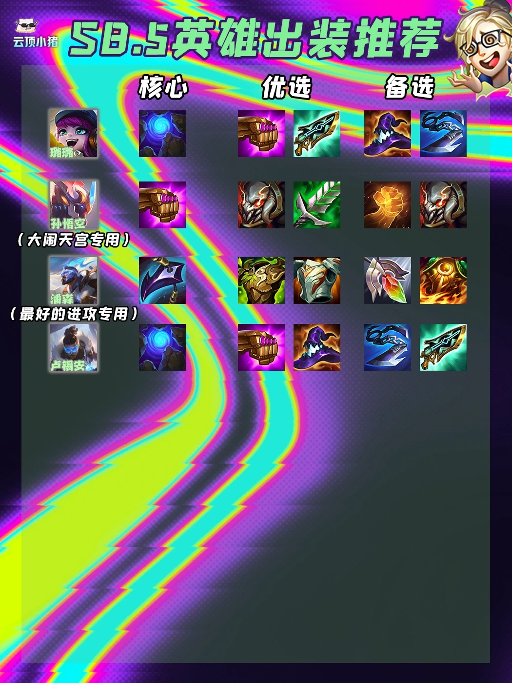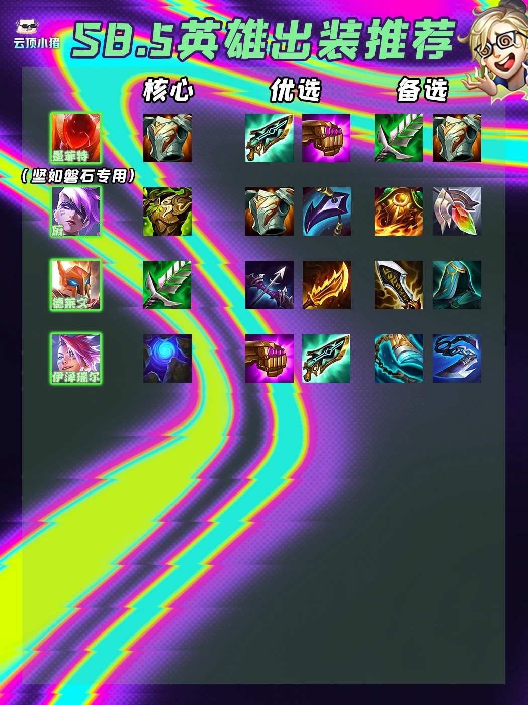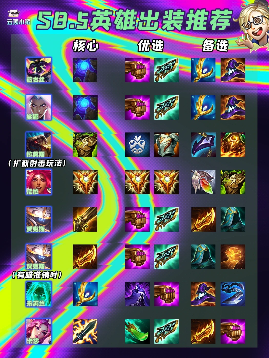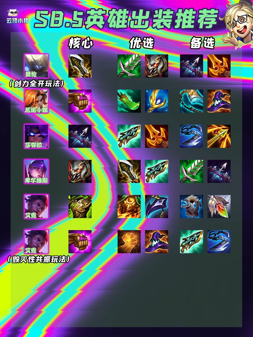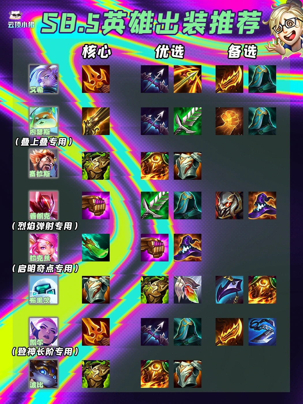 每个赛季都有小伙伴问关于出装的问题,本来早就该出出装思路理解了,因为备赛的原因拖忘了,今天就来分享一下当前版本全英雄的一个出装推荐和一些关于装备理解的小思路。