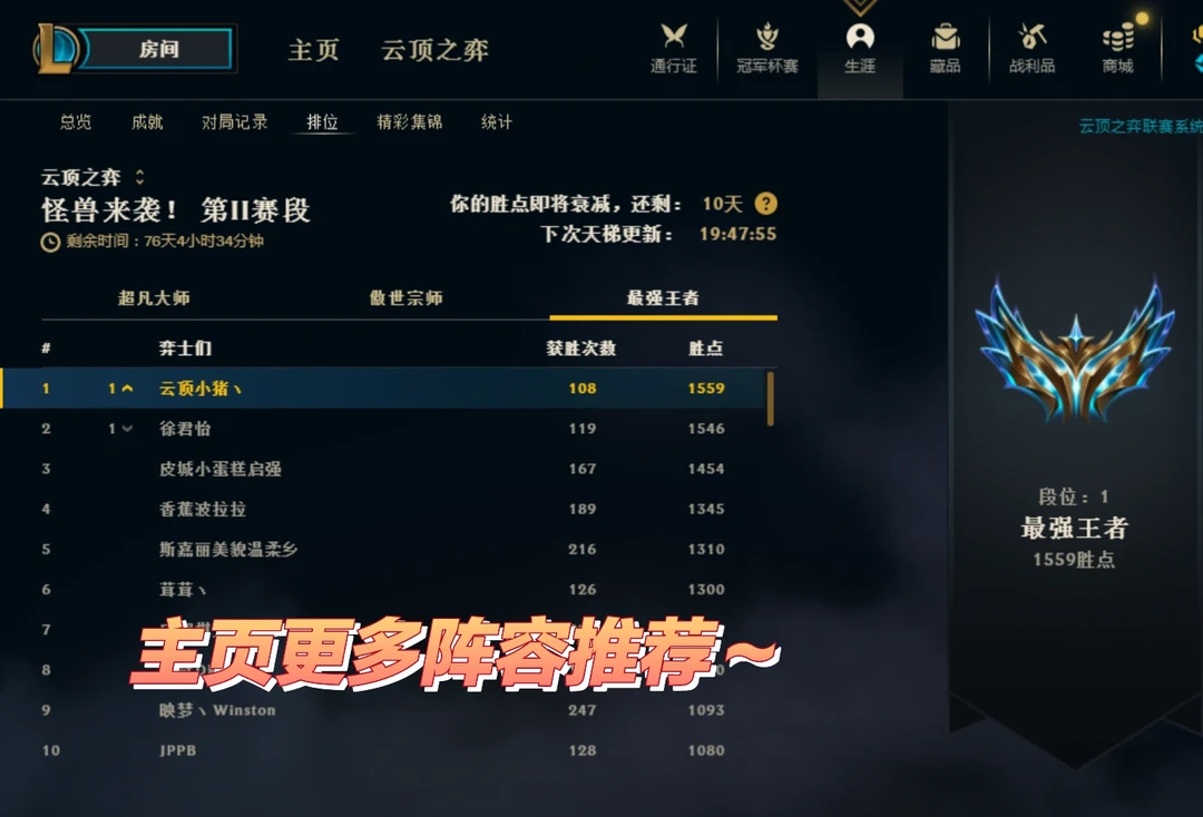 以下是结合我个人排位以及常年驻守国服前十的直播间得出来的结论,理解非绝对,但对于冲击王者段位绝对是足够用了。