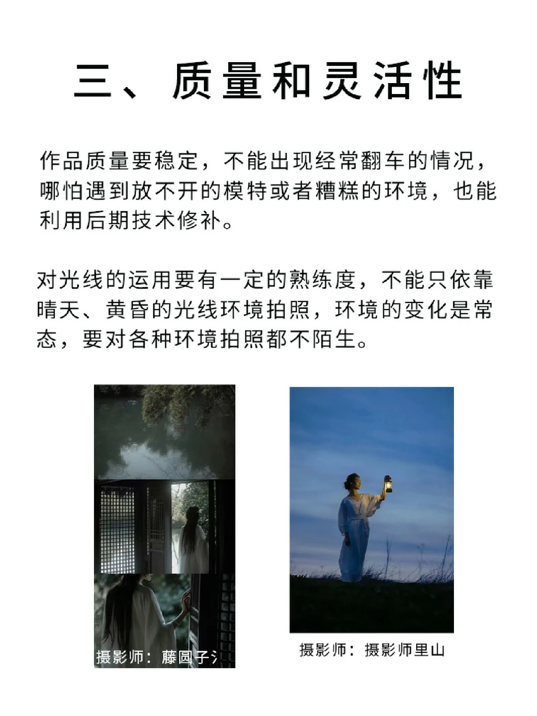👉🏻然后你就要思考一下你对各种器材、光线、后期修图调色的运用熟练度了,这算是第二步的补充,有灵光一现的作品还不够,要确保出片品质的稳定,才能不翻车✔️