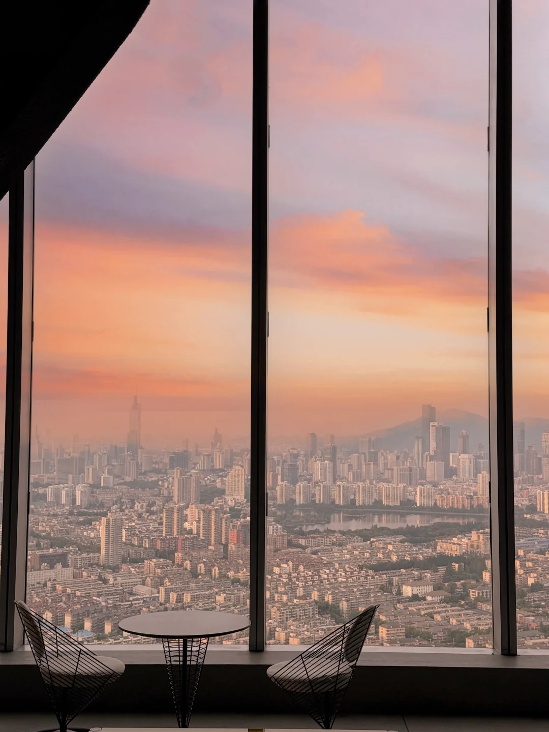 南京是真的不缺好看又不花钱地方呀… 高空日落🌇真的巨美!!浪漫氛围感拉满🈵 不仅可以喝咖啡☕还可以看日落夕阳🏜️ 360°无死角俯瞰南京金陵城的城市全貌!