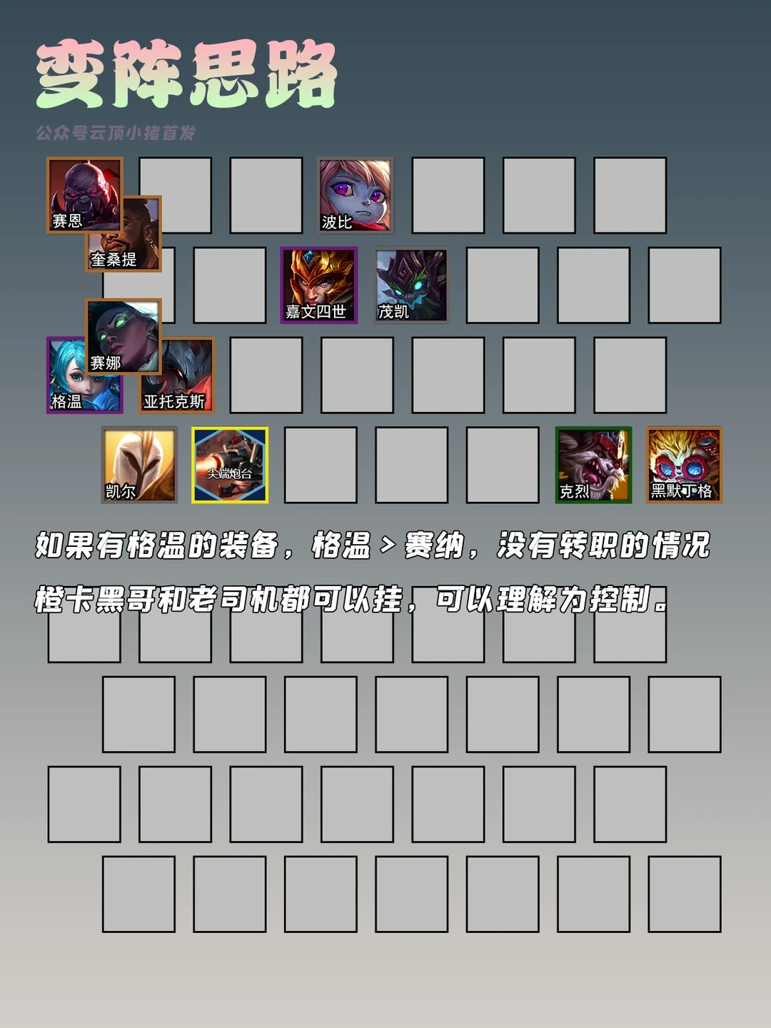 格温这张牌有装备的情况下提升>塞纳,塞纳的护盾和攻速收益比白纸格温要高。