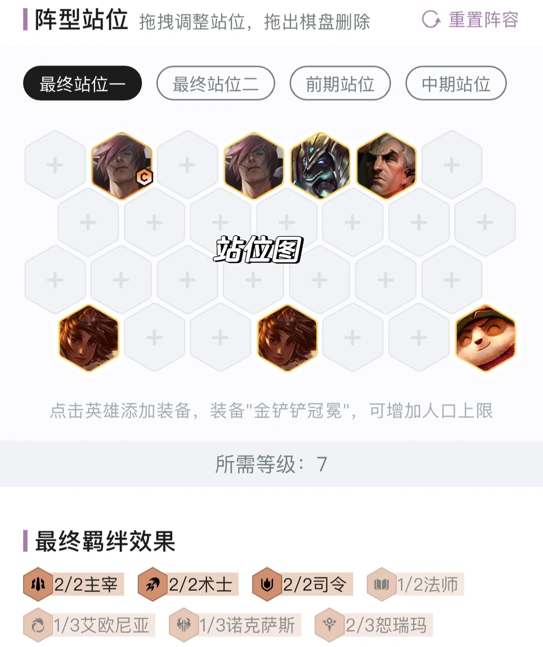 最强的瑟提放中间,后排没有圣杯就分散站位。