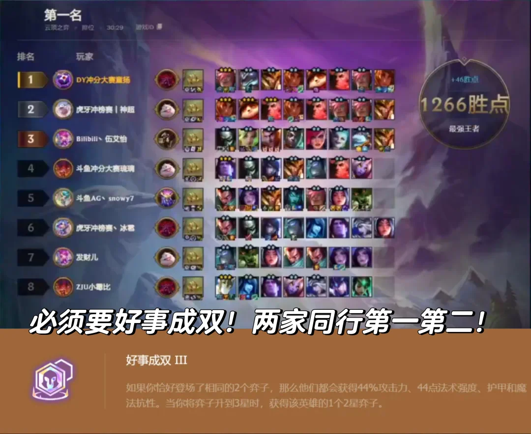 今天给大家推荐来自于国服第三童扬的好事成双玩法的理解,强度相当炸裂,第二超哥(神超)也是玩的这个阵容,有同行第一第二?多夸张不用多说了吧。