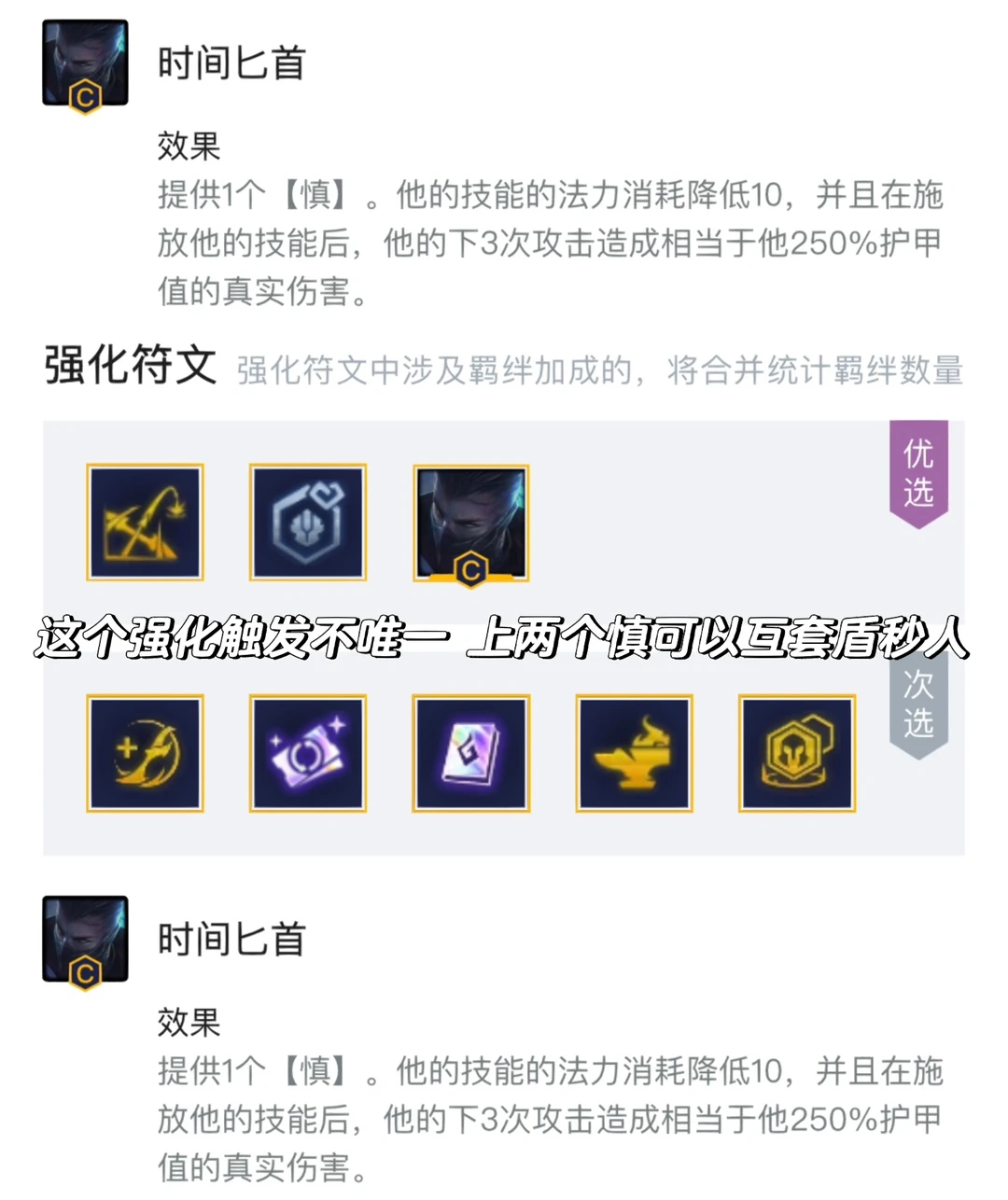 英雄强化:必备时间匕首。