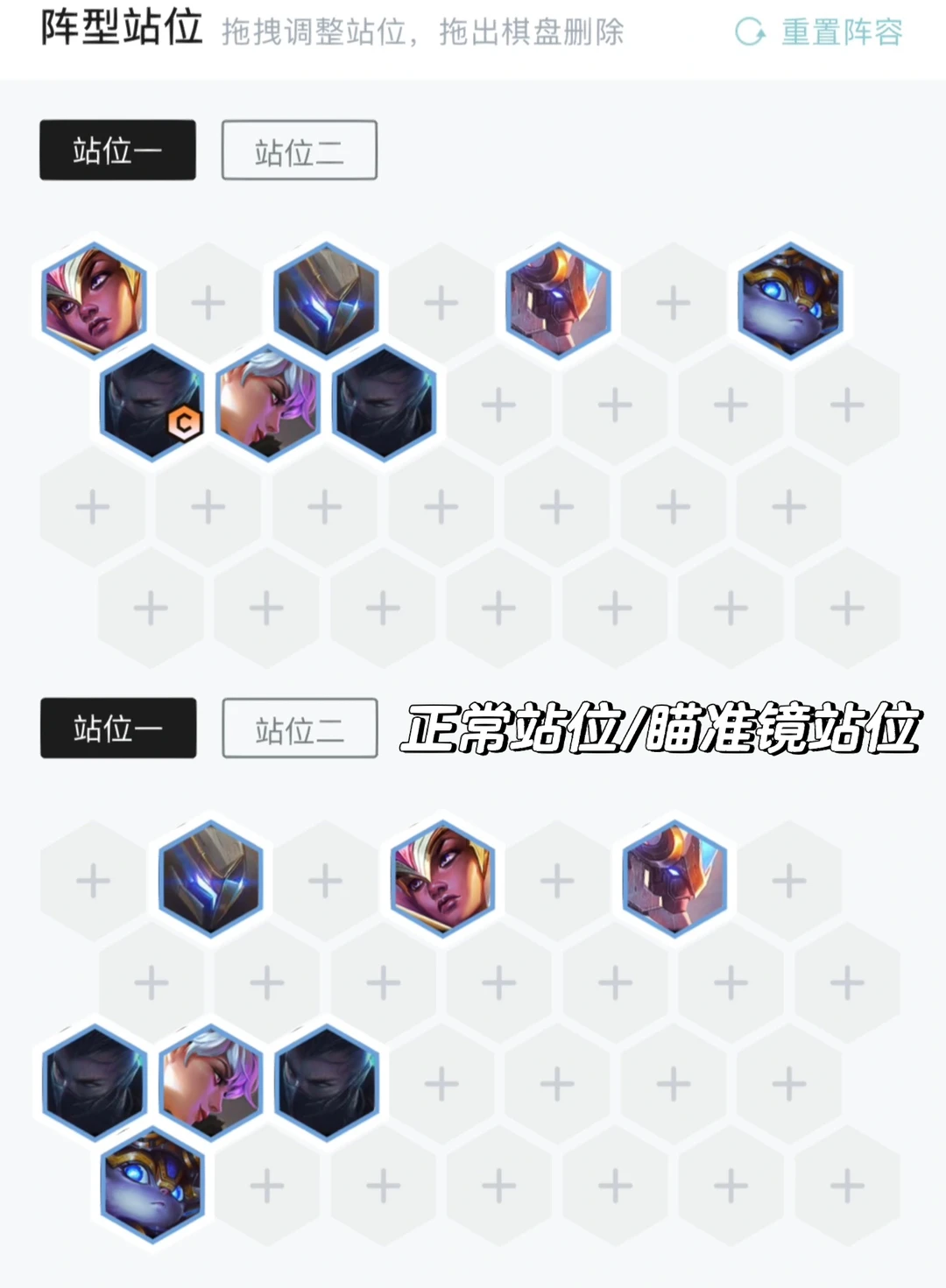 有瞄准镜可以放倒数第二排,没有一般是放第二排,放在盖伦后面比较安全,第一时间不要挨打就好。
